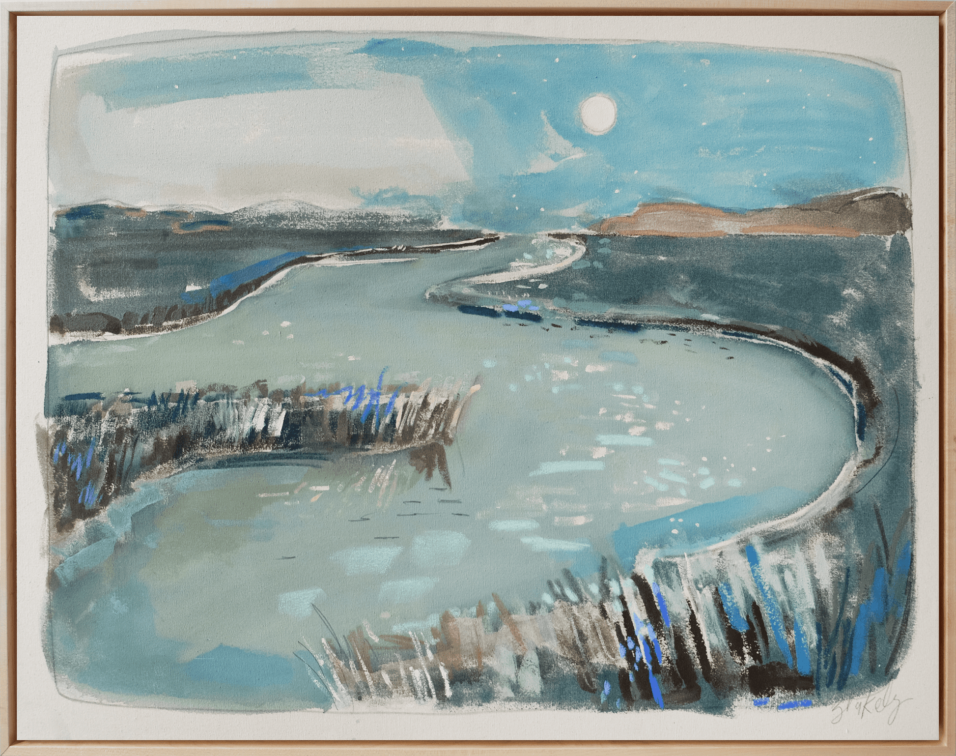 Acrylic, gouache and pastel on Natural Raw Canvas with an optional Maple Wood Floater frame