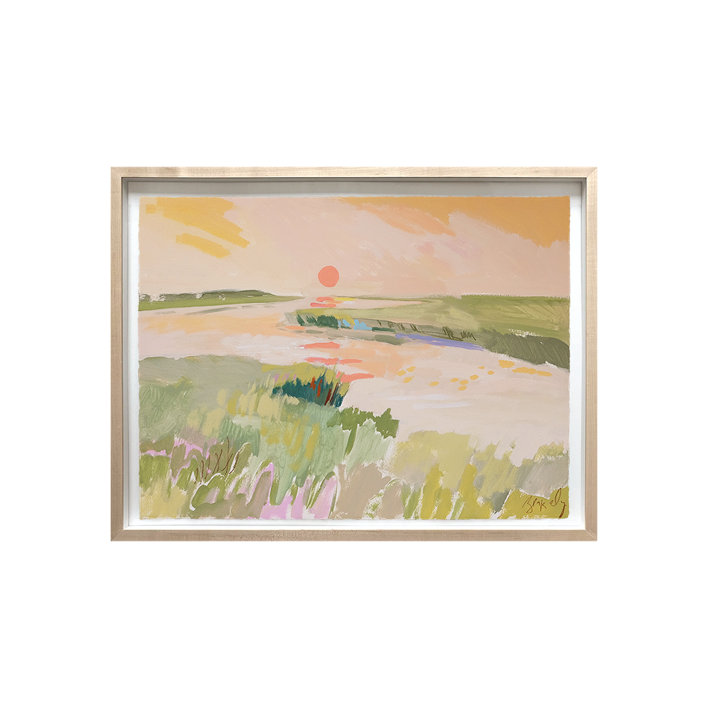 Acrylic, pencil, and wax pastel on paper with an optional Natural Wood Floated frame