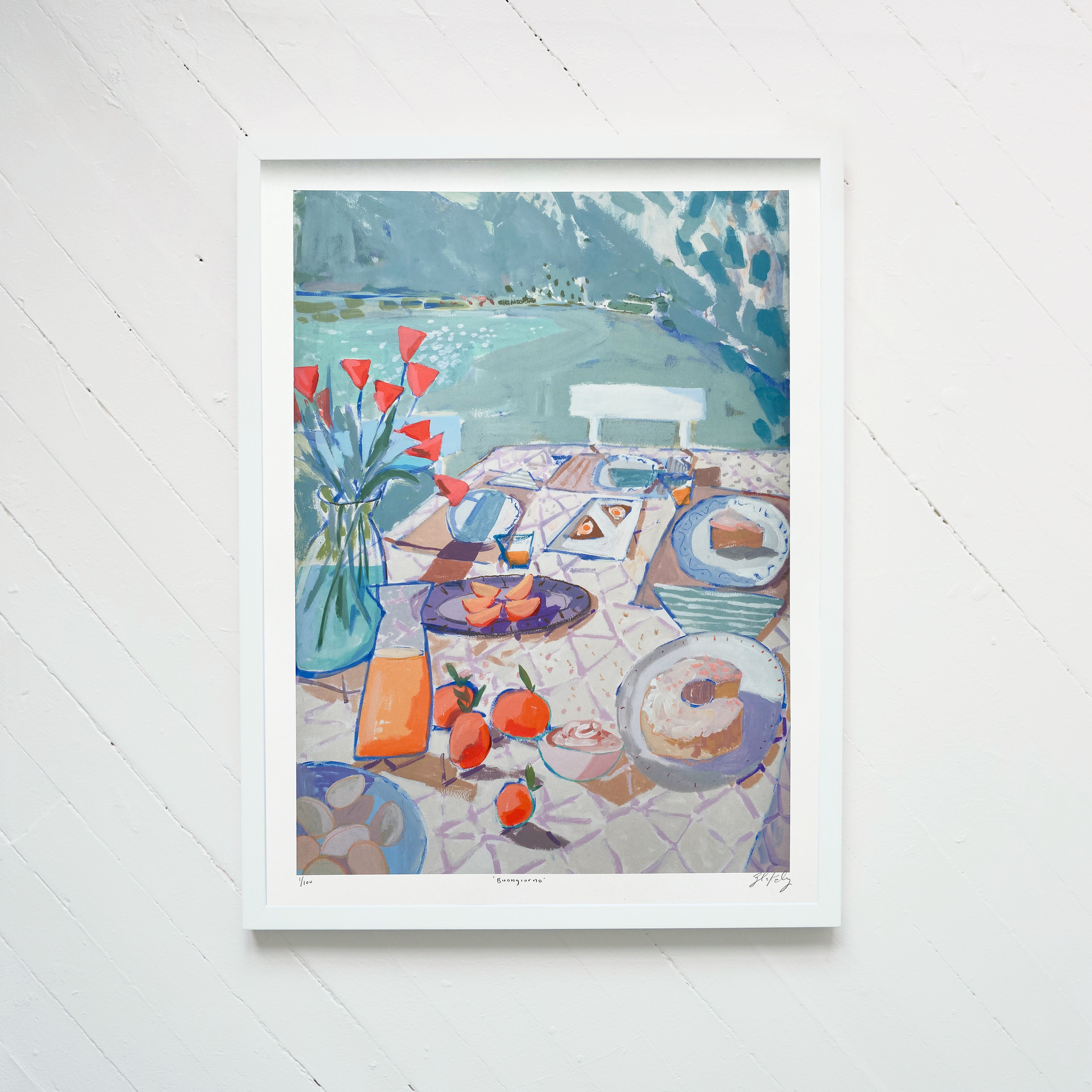 This limited edition giclee print was made from an original painting done in acrylic, gouache, and pencil. Every print is signed and editioned by Blakely. Unframed prints will ship from Charleston, SC within 3-8 business days. Framed prints take approximately 4-6 weeks for delivery. Only 100 available of each size.