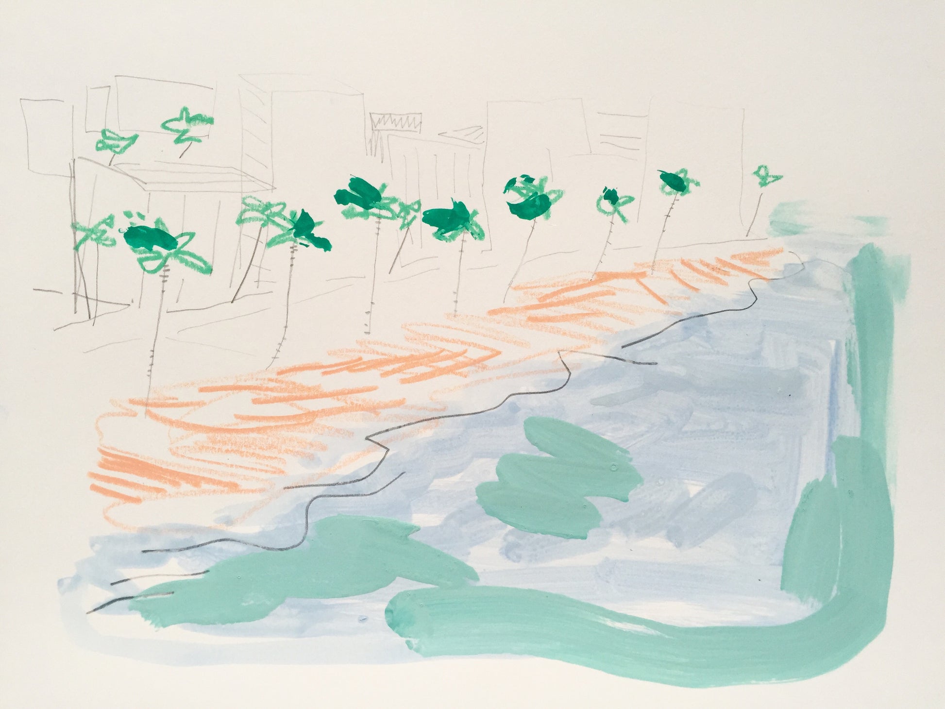 This piece is done on water color paper with acrylic paint, crayon, pencil, and layers of paper. I was very inspired during my trip down the coast of California, but felt that I needed to expand from my normal paintings to capture it's spunk. This piece will be shipped from Charleston, SC in a flat cardboard box. It is a standard size, so you can buy or order a frame with out having to do a custom one.