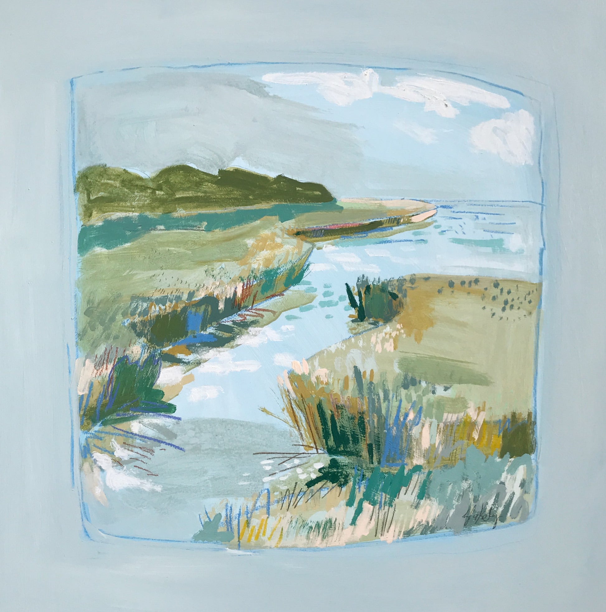 This piece is a part of Blakely's 2019 Summer Marsh Collection. It is has a depth of 2 inches and it's painted blue to match the background color. This piece will be hand signed by Blakely and shipped via UPS from Charleston, SC within two weeks of purchase. Free shipping in the US, additional costs for shipping internationally.
