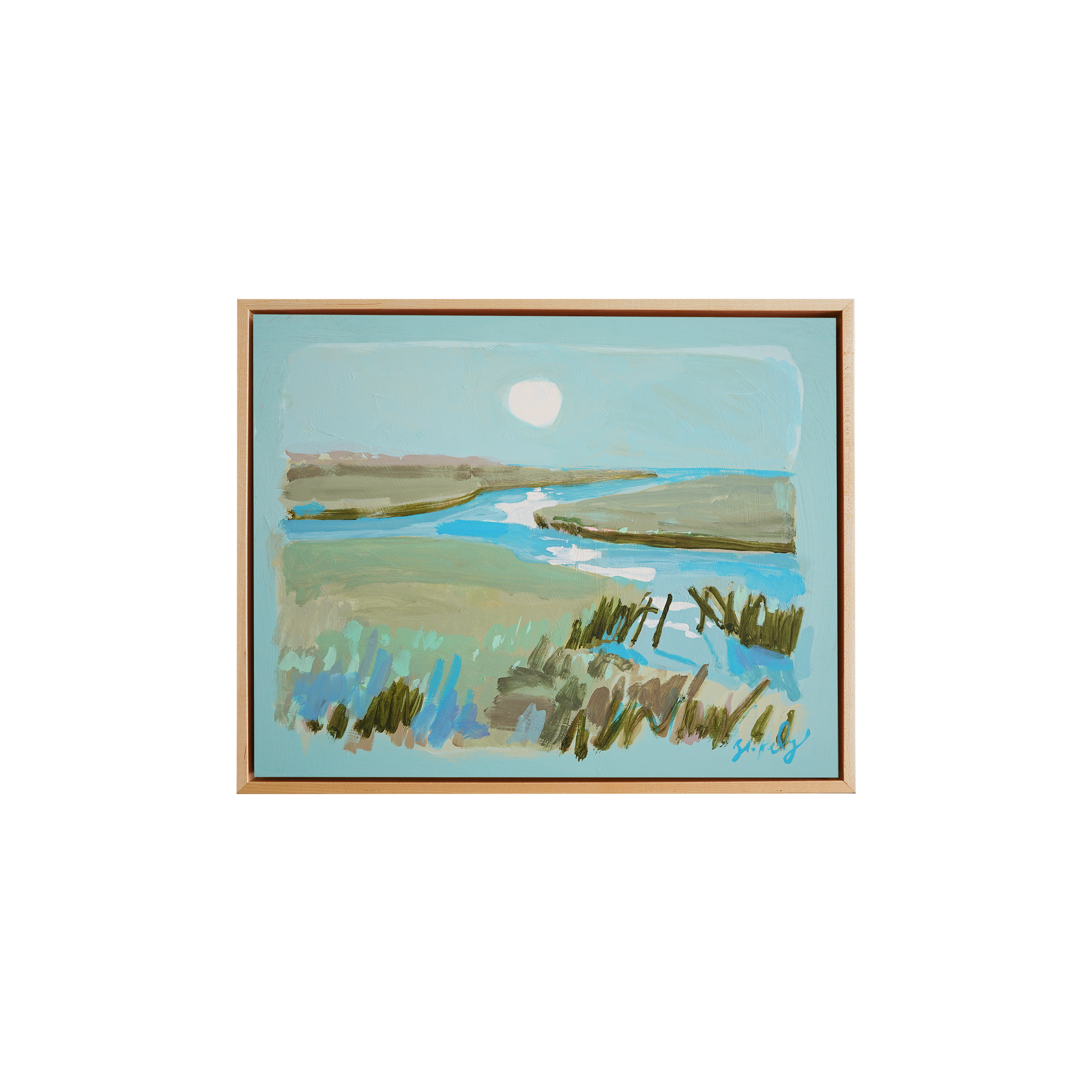 Acrylic on Birch Wood Panel framed in a Natural Wood Floater frame. Price below includes price of frame.