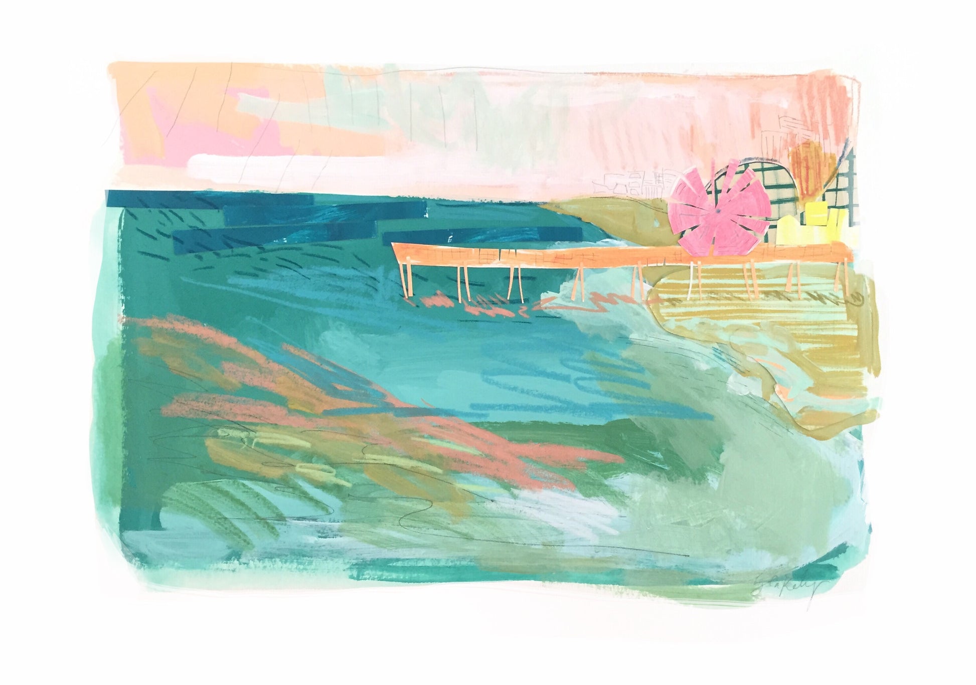 This piece is done on water color paper with acrylic paint, crayon, pencil, and layers of paper. I was very inspired during my trip down the coast of California, but felt that I needed to expand from my normal paintings to capture it's spunk. This piece will be shipped from Charleston, SC in a flat cardboard box. It is a standard size, so you can buy or order a frame with out having to do a custom one.