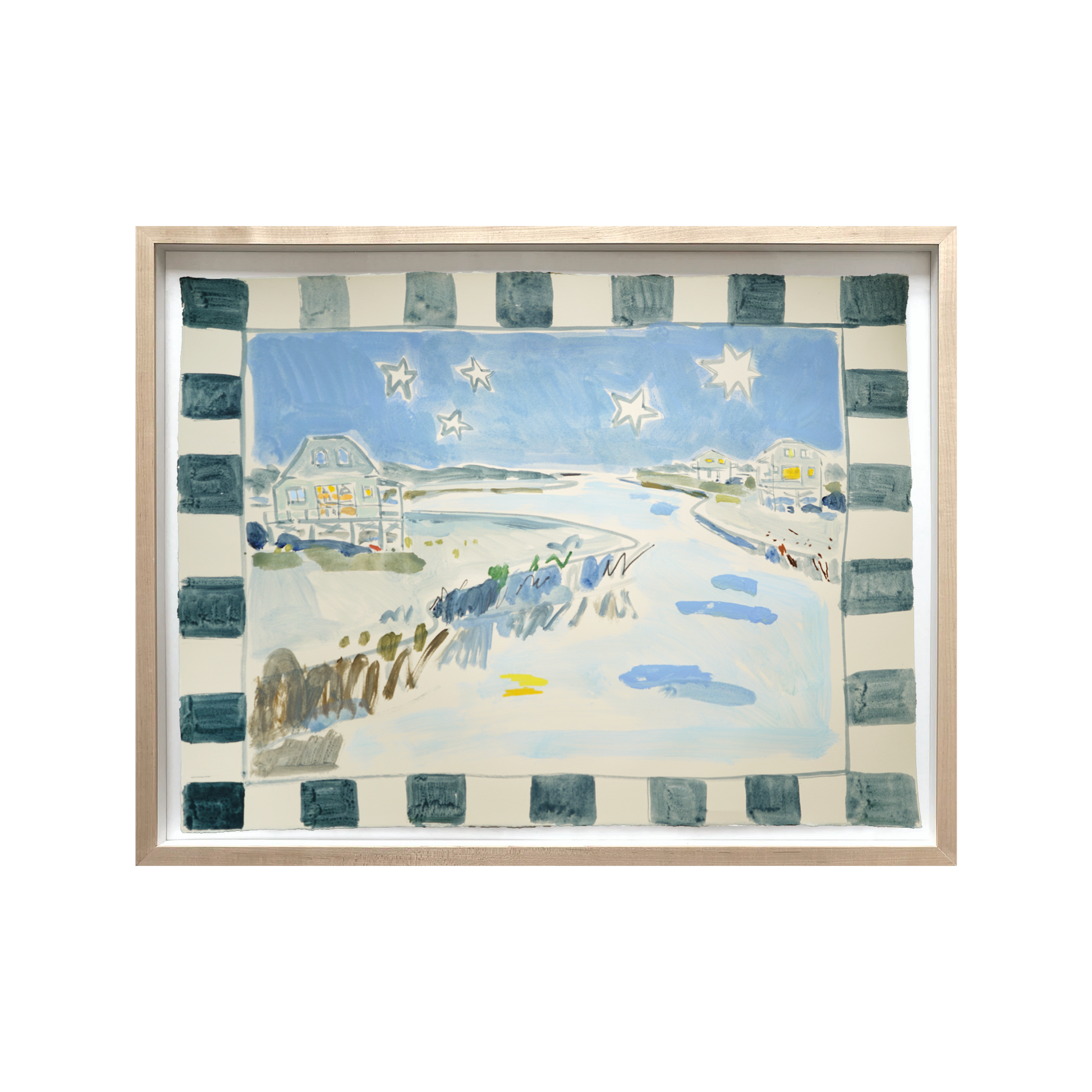 Acrylic, pencil, and wax pastel on BFK Rives 280gsm paper with an optional Natural Wood Floated frame