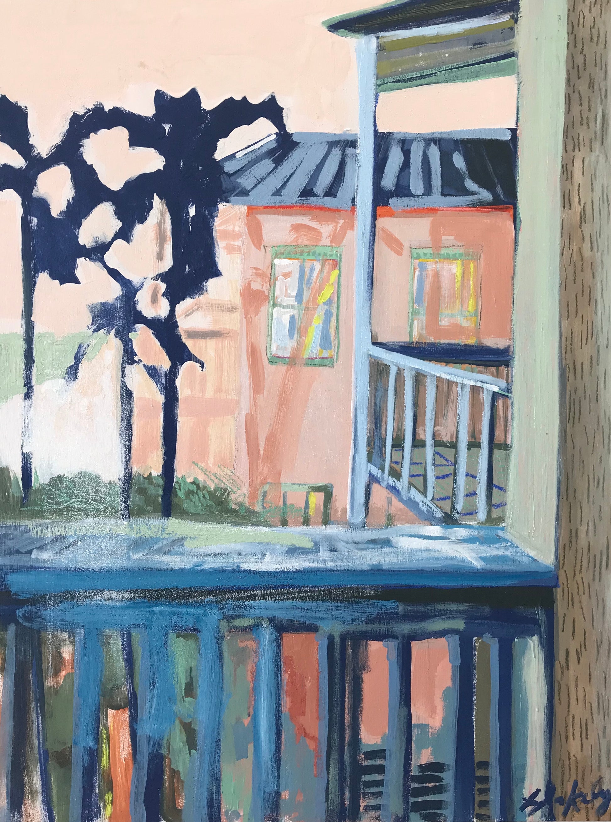 This piece is part of the collection, 'The Color of Home.' It depicts life by the coast through bold brush strokes, pattern, and blocks of color. This piece is ready to hang and has a two inch depth that will be painted white. This piece will be shipped from Charleston, SC via UPS.