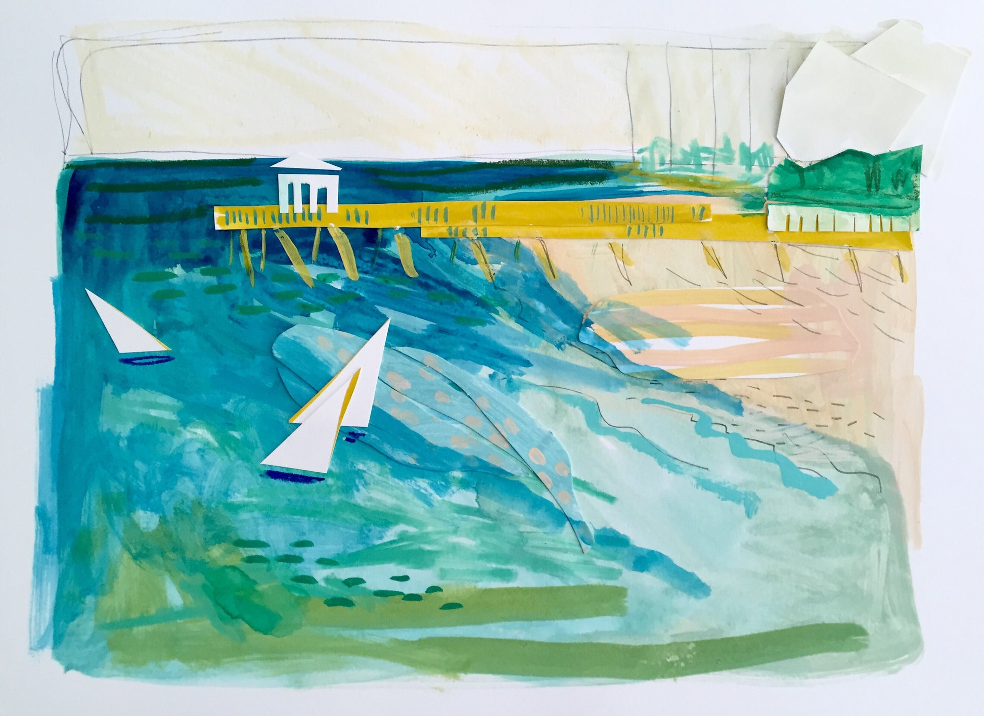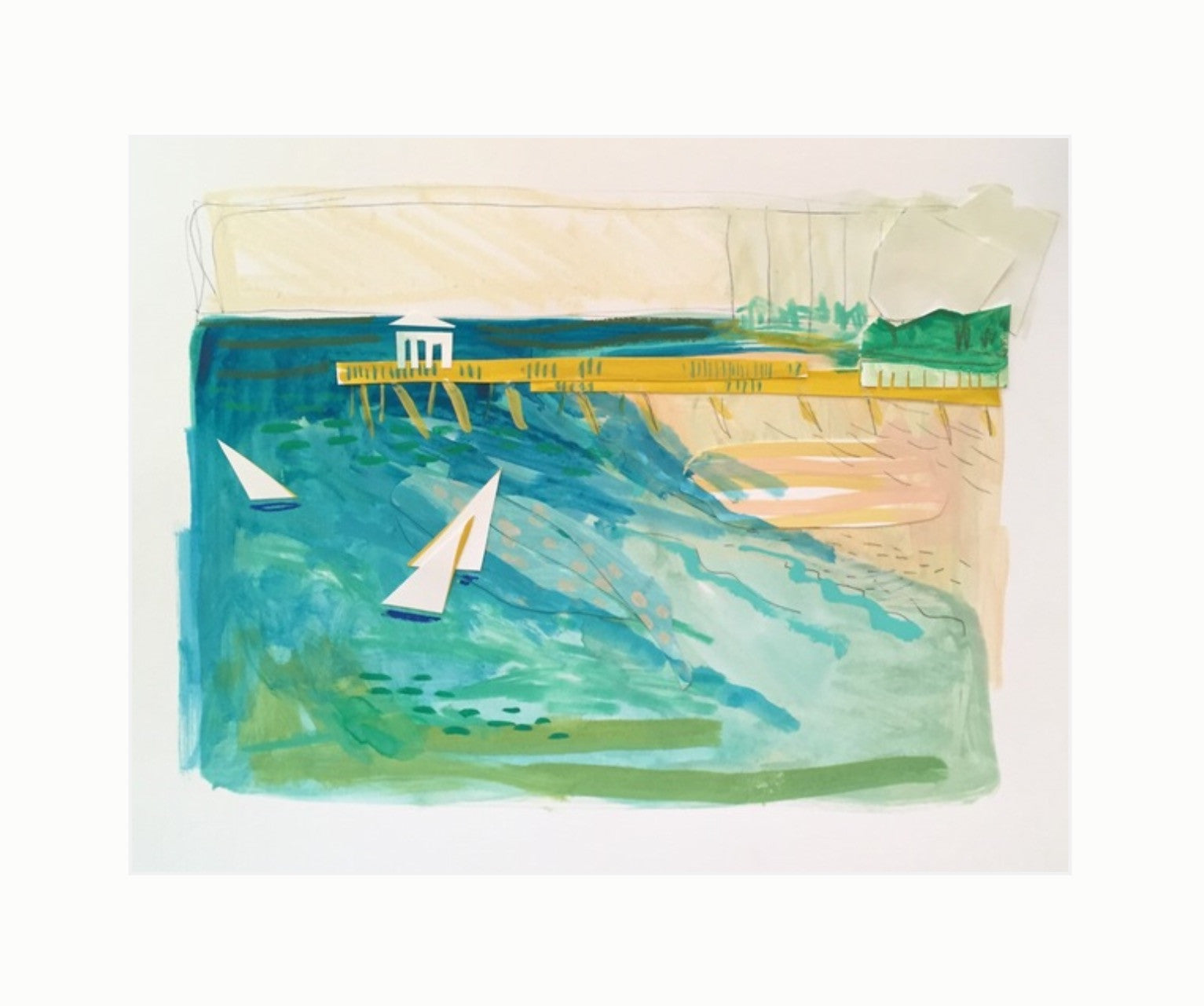 This piece is done on water color paper with acrylic paint, crayon, pencil, and layers of paper. I was very inspired during my trip down the coast of California, but felt that I needed to expand from my normal paintings to capture it's spunk. This piece will be shipped from Charleston, SC in a flat cardboard box. It is a standard size, so you can buy or order a frame with out having to do a custom one.