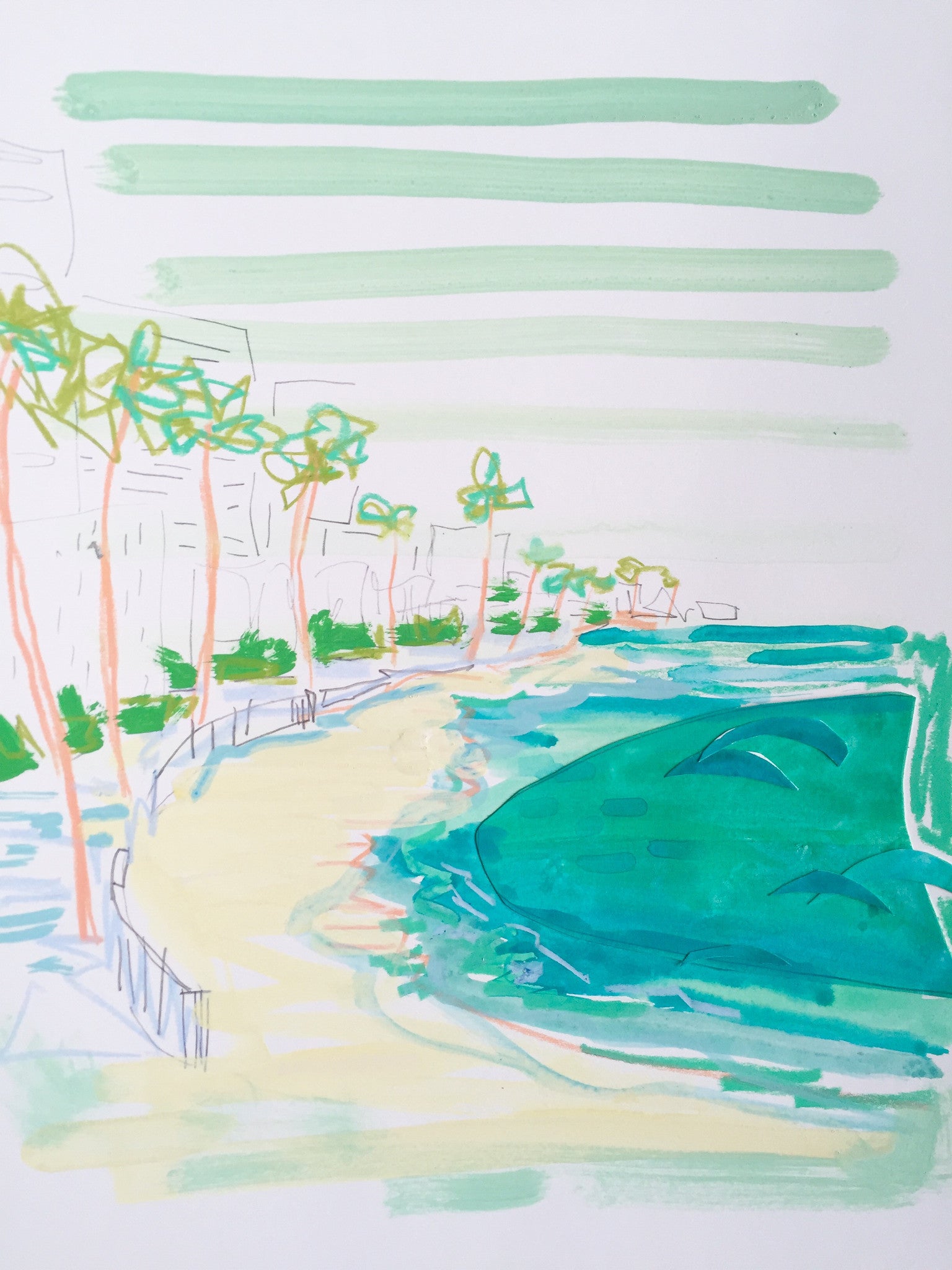 This piece is done on water color paper with acrylic paint, crayon, pencil, and layers of paper. I was very inspired during my trip down the coast of California, but felt that I needed to expand from my normal paintings to capture it's spunk. This piece will be shipped from Charleston, SC in a flat cardboard box. It is a standard size, so you can buy or order a frame with out having to do a custom one.