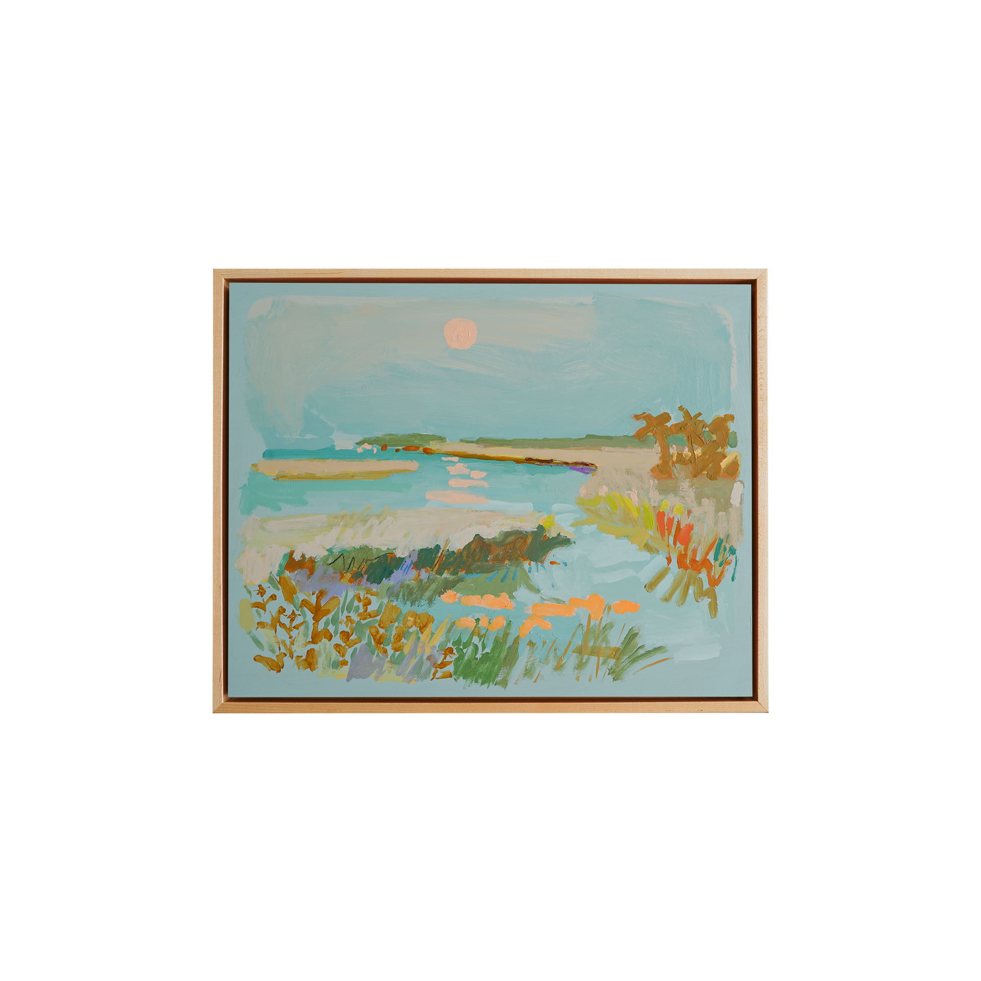 Acrylic on Birch Wood Panel framed in a Natural Wood Floater frame. Price below includes price of frame.