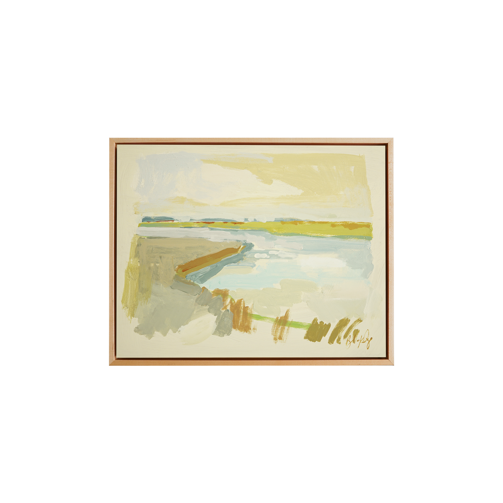 Acrylic on Birch Wood Panel framed in a Natural Wood Floater frame. Price below includes price of frame.