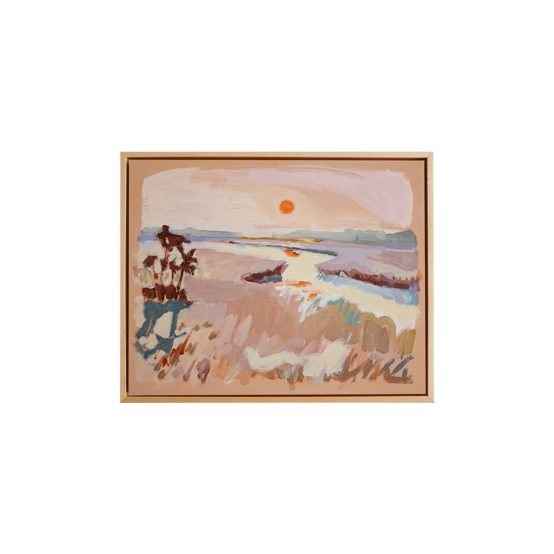 Acrylic on Birch Wood Panel framed in a Natural Wood Floater frame. Price below includes price of frame.