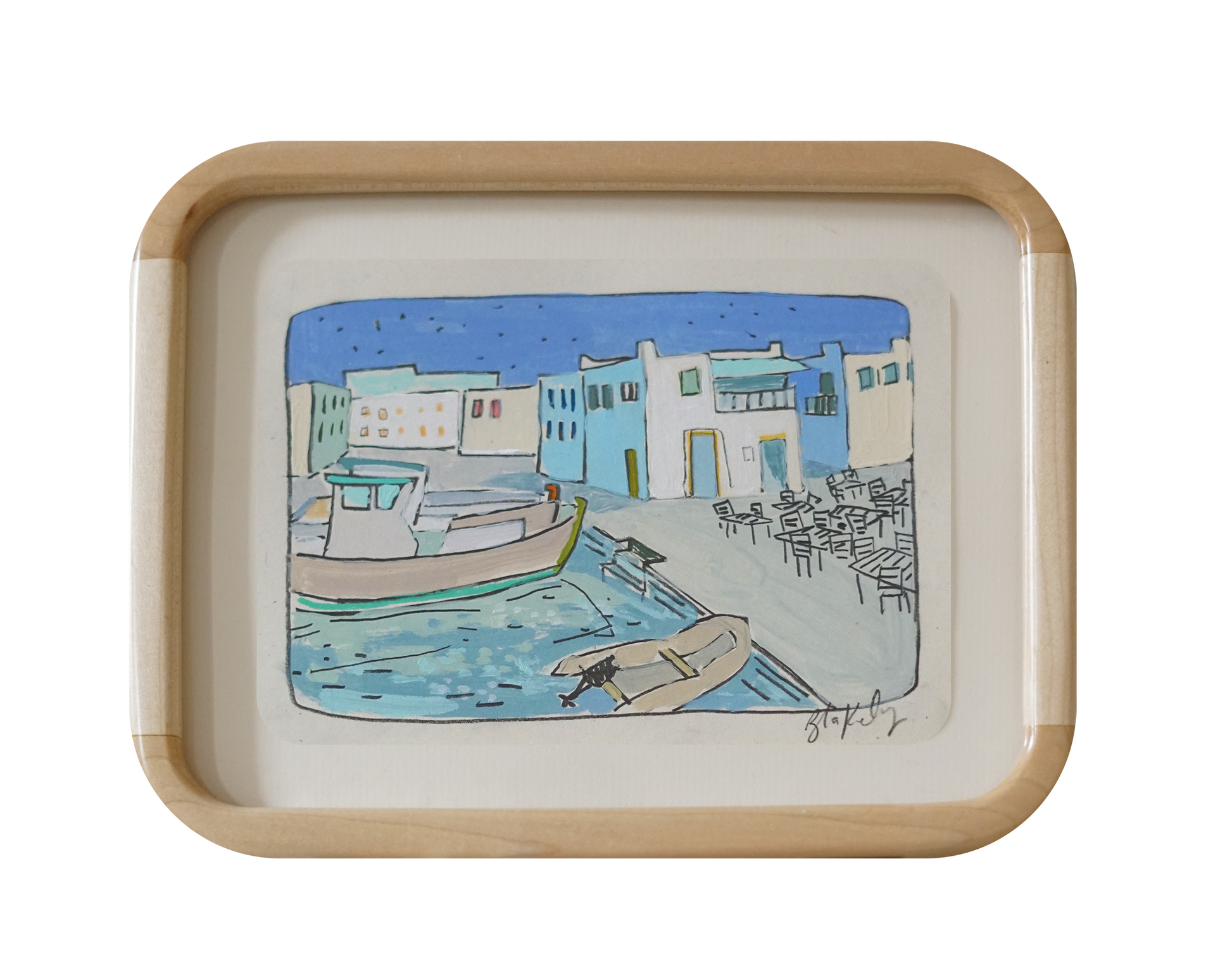 Acrylic, pencil and pastel on recycled french paper with a rounded maple wood frame