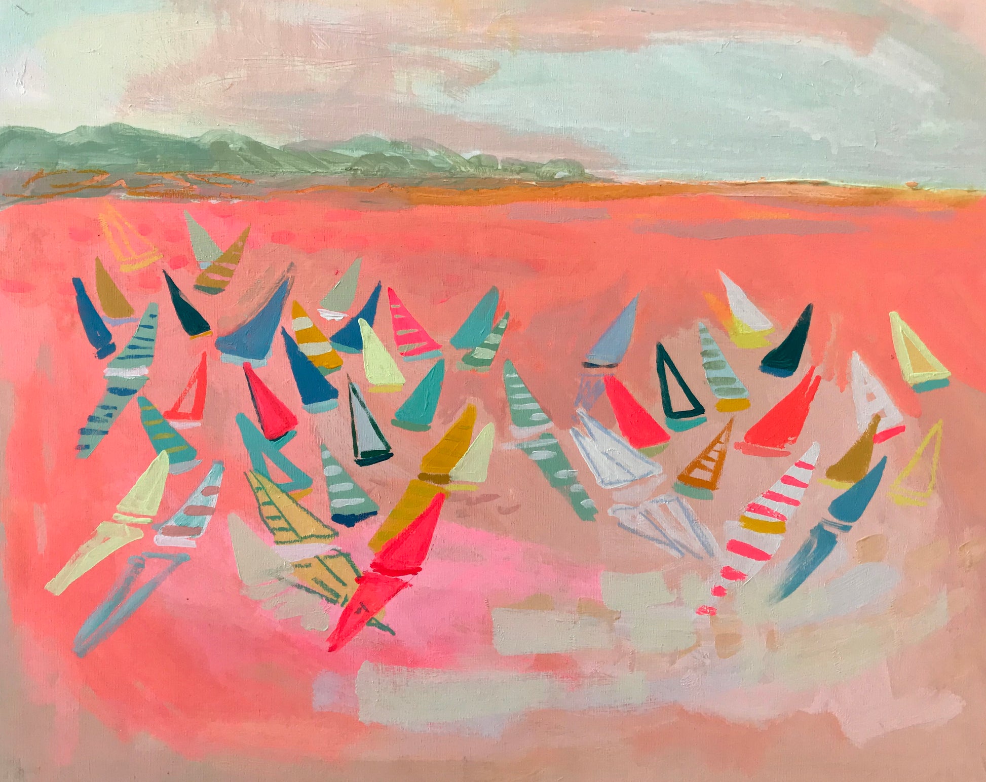 This painting was based off Blakely's collaboration with Anthropologie. The piece is painted on a birch wood panel, with a 2 inch depth, painted white. It will be shipped from Charleston, SC via UPS.