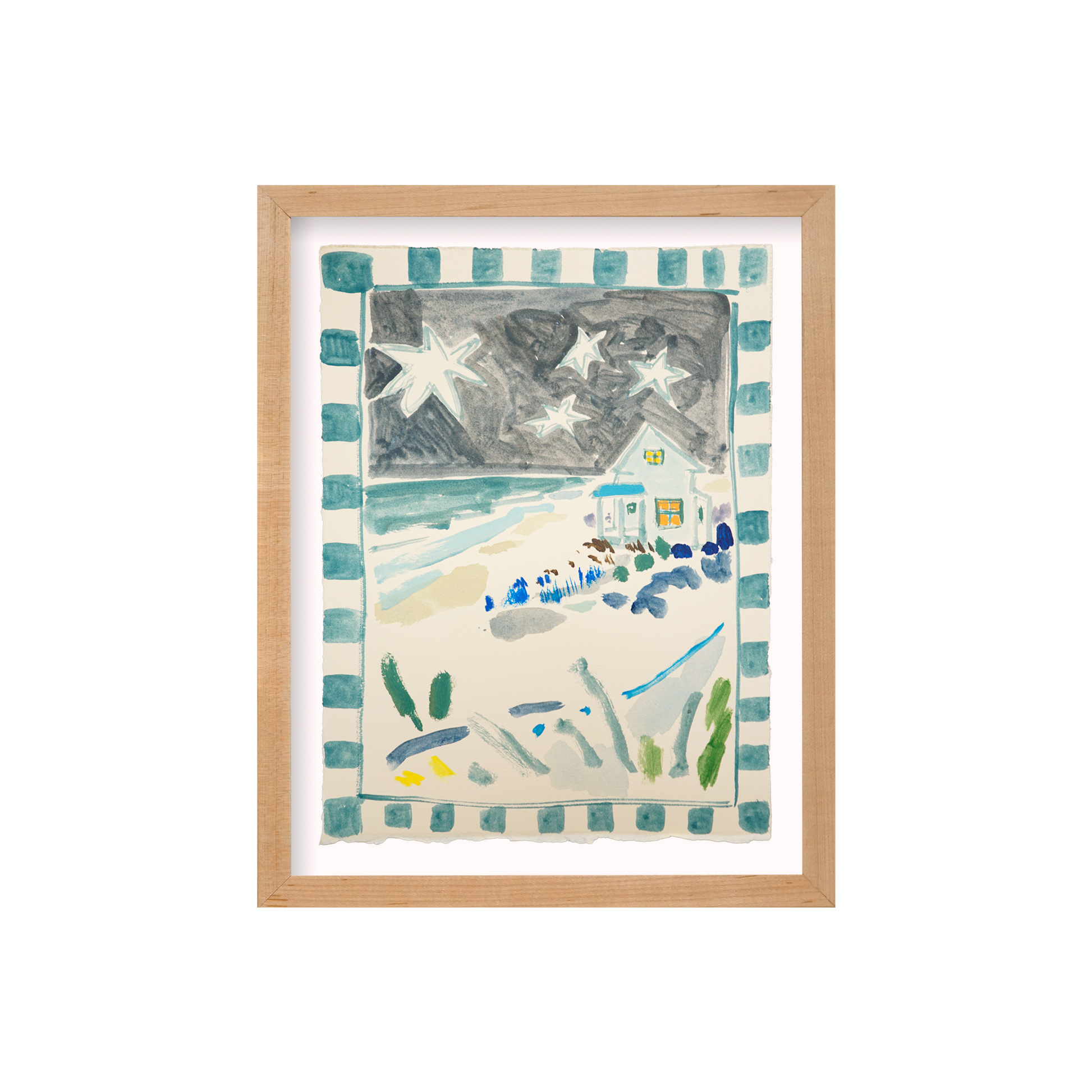Acrylic, pencil, and wax pastel on BFK Rives 280gsm paper floated in a Natural Wood Frame with Dove White mat