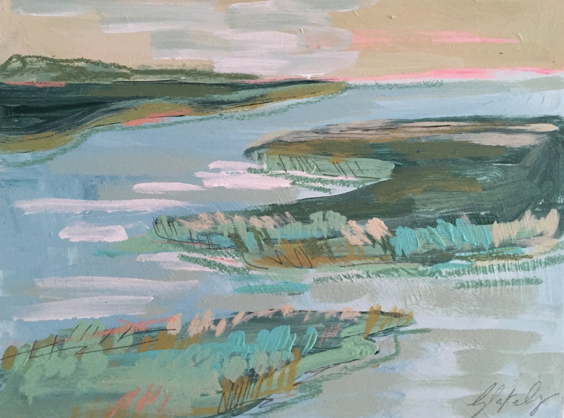 This piece is an original marsh painting from August 2016. It is made with acrylic paint, neocolor crayons, pencil, and oil pastel on a birch wood panel. The sides have a two inch depth and will be painted white. It is signed by the artist and will be shipped from Charleston, SC via UPS.