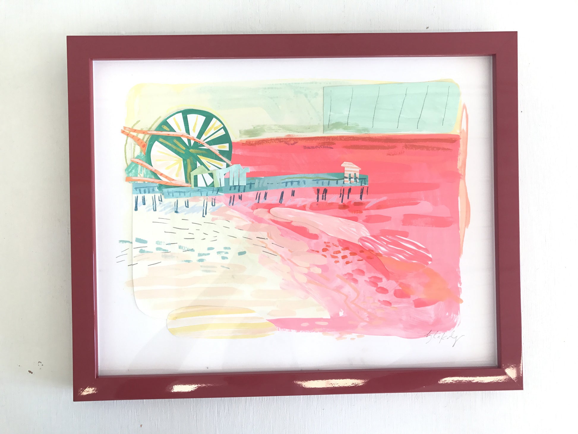 This piece is done on water color paper with acrylic paint, crayon, pencil, and layers of paper. I was very inspired during my trip down the coast of California, but felt that I needed to expand from my normal paintings to capture it's spunk. This piece will be shipped from Charleston, SC in a flat cardboard box. It is a standard size, so you can buy or order a frame with out having to do a custom one.