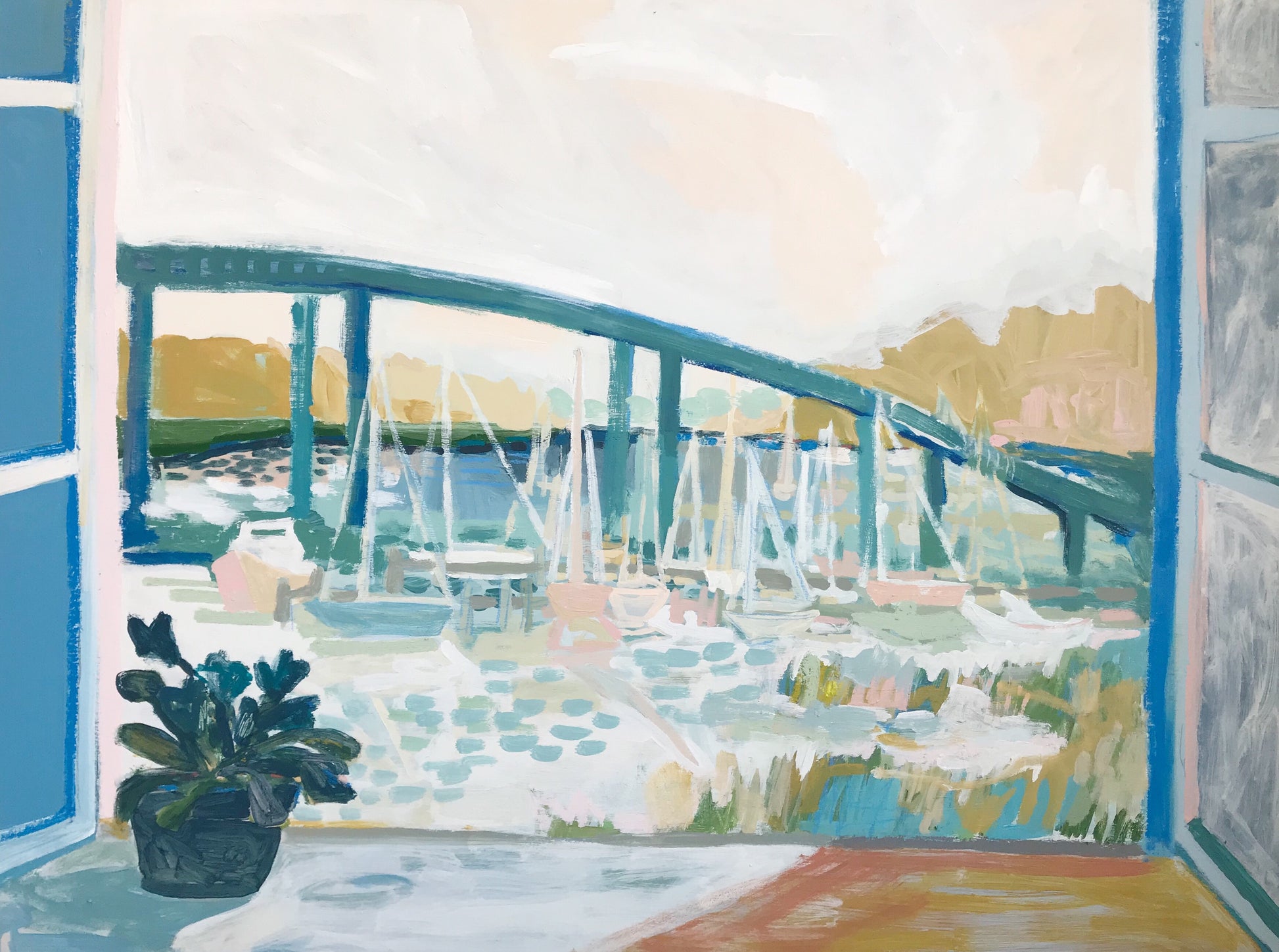 This piece is part of the collection, 'The Color of Home.' It depicts life by the coast through bold brush strokes, pattern, and blocks of color. This piece is ready to hang and has a two inch depth that will be painted white. This piece will be shipped from Charleston, SC via UPS.