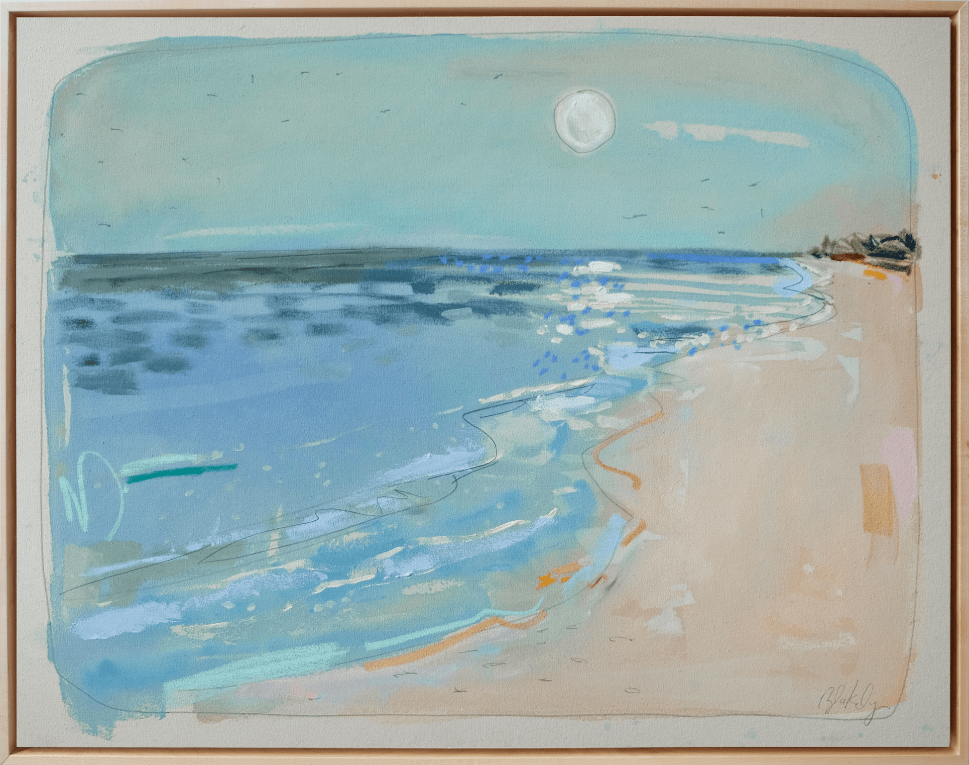 Acrylic, gouache and pastel on Natural Raw Canvas with an optional Maple Wood Floater frame