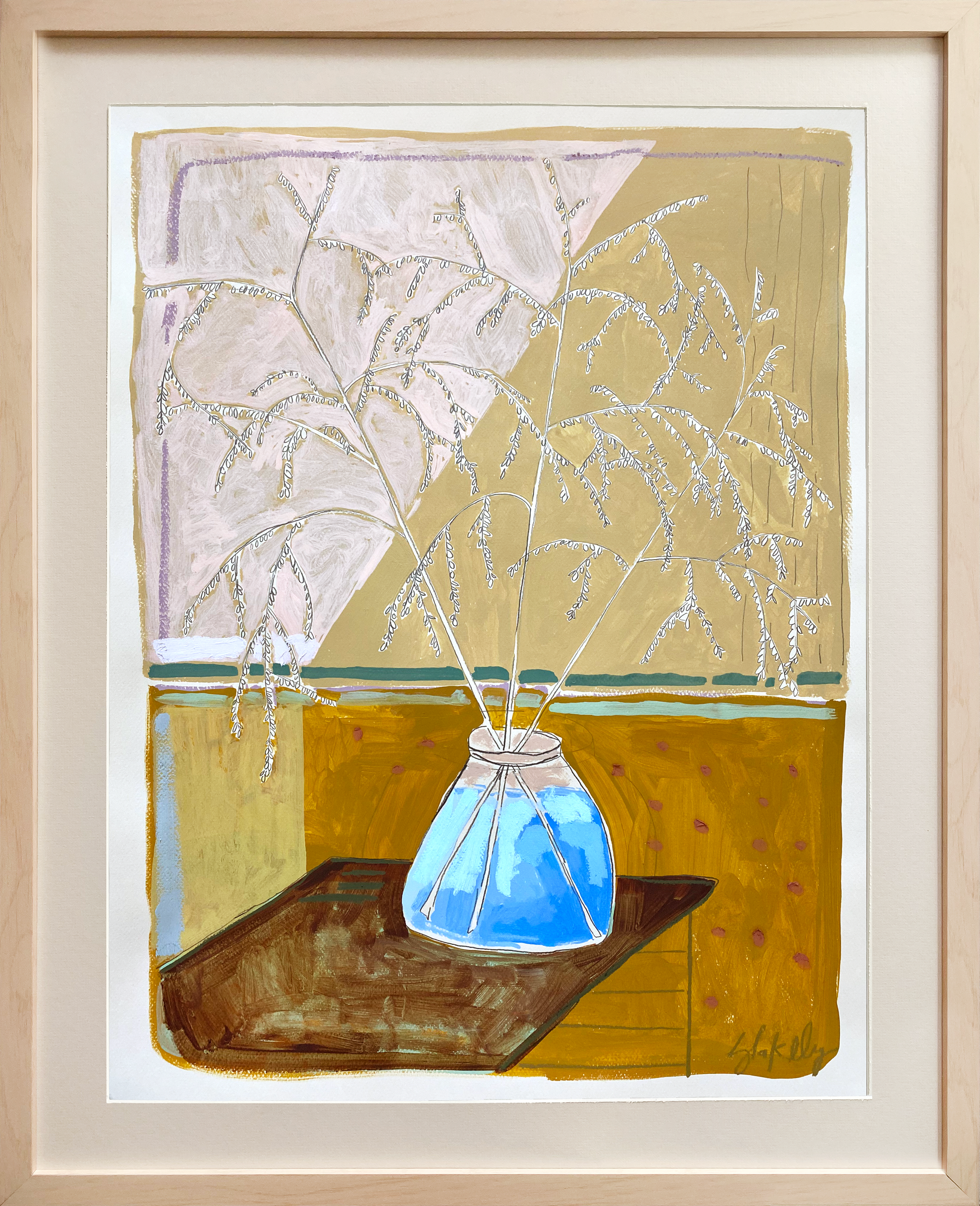 Acrylic, oil, pencil and pastel on Canson Cream Paper with an optional Antique Buff Mat and Maple Wood Frame