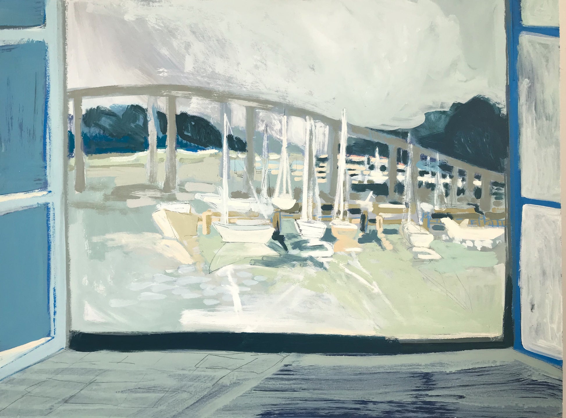 This piece is part of the collection, 'The Color of Home.' It depicts life by the coast through bold brush strokes, pattern, and blocks of color. This piece is ready to hang and has a two inch depth that will be painted white. This piece will be shipped from Charleston, SC via UPS.