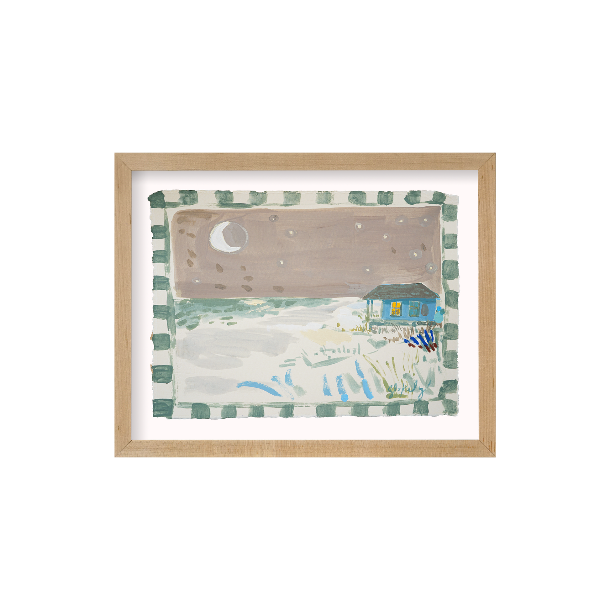 Acrylic, pencil, and wax pastel on BFK Rives 280gsm paper floated in a Natural Wood Frame with Pure White mat