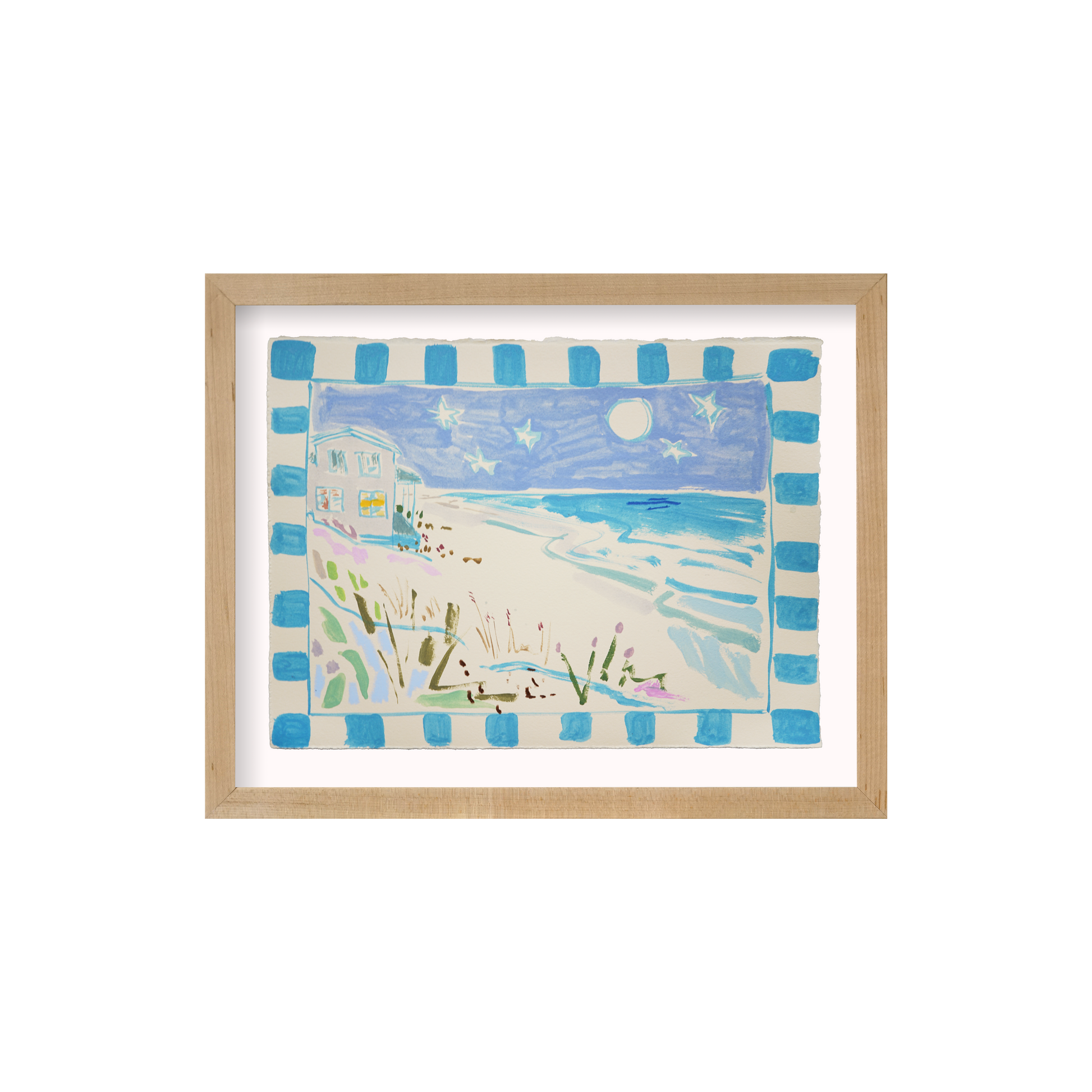 Acrylic, pencil, and wax pastel on BFK Rives 280gsm paper floated in a Natural Wood Frame with Dove White mat