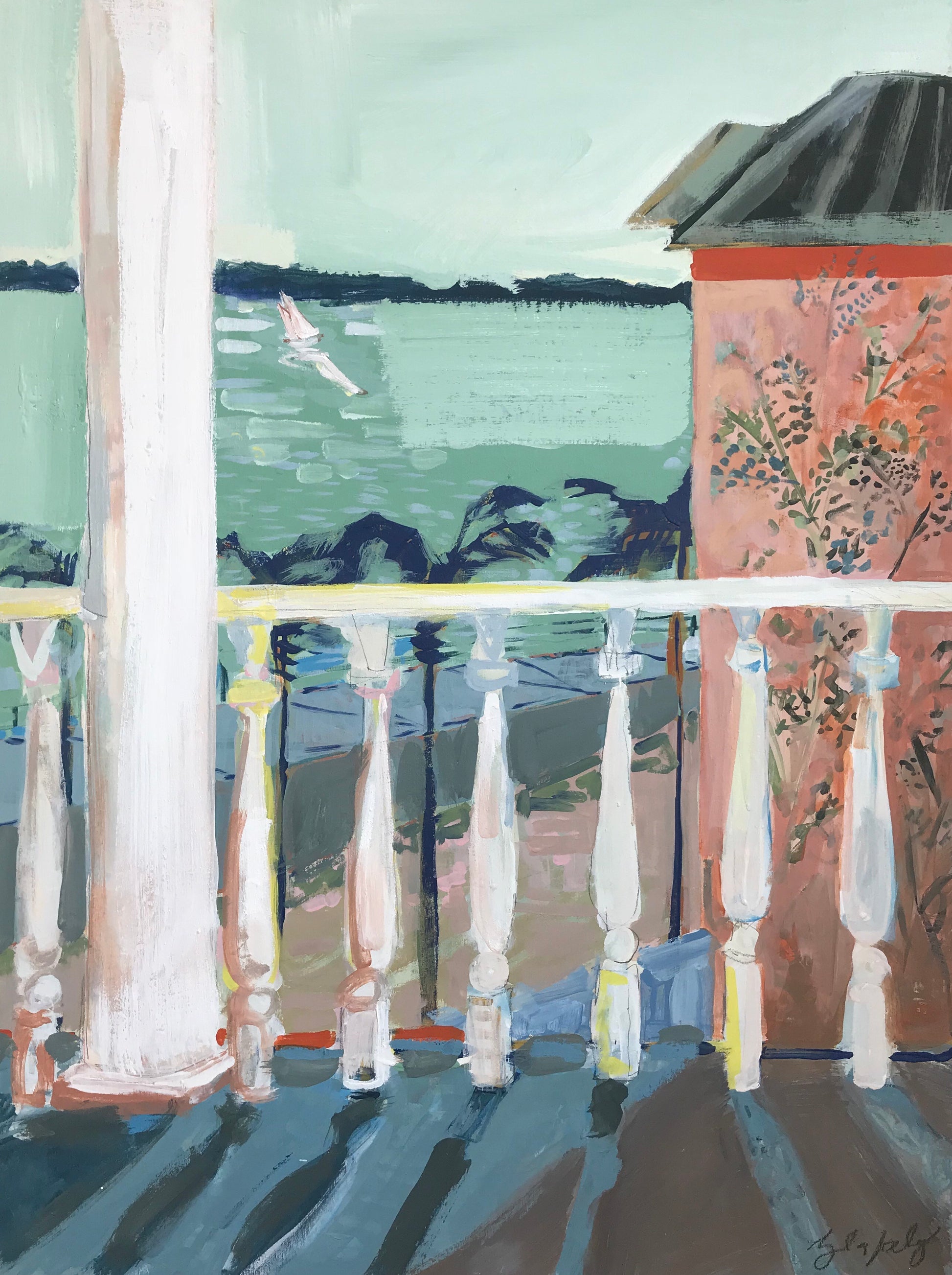 This piece is part of the collection, 'The Color of Home.' It depicts life by the coast through bold brush strokes, pattern, and blocks of color. This piece is ready to hang and has a two inch depth that will be painted white. This piece will be shipped from Charleston, SC via UPS.