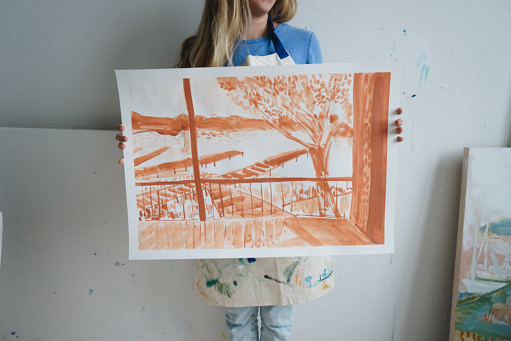 This piece is painted with all Farrow & Ball paint in the color Red Earth. On the top, a monochromatic coastal scene, on the bottom a contemporary block of color. It is part of the collection, 'The Color of Home' which depicts life by the coast through bold brush strokes, pattern, and blocks of color. This piece is ready to hang and will be shipped from Charleston, SC via UPS.