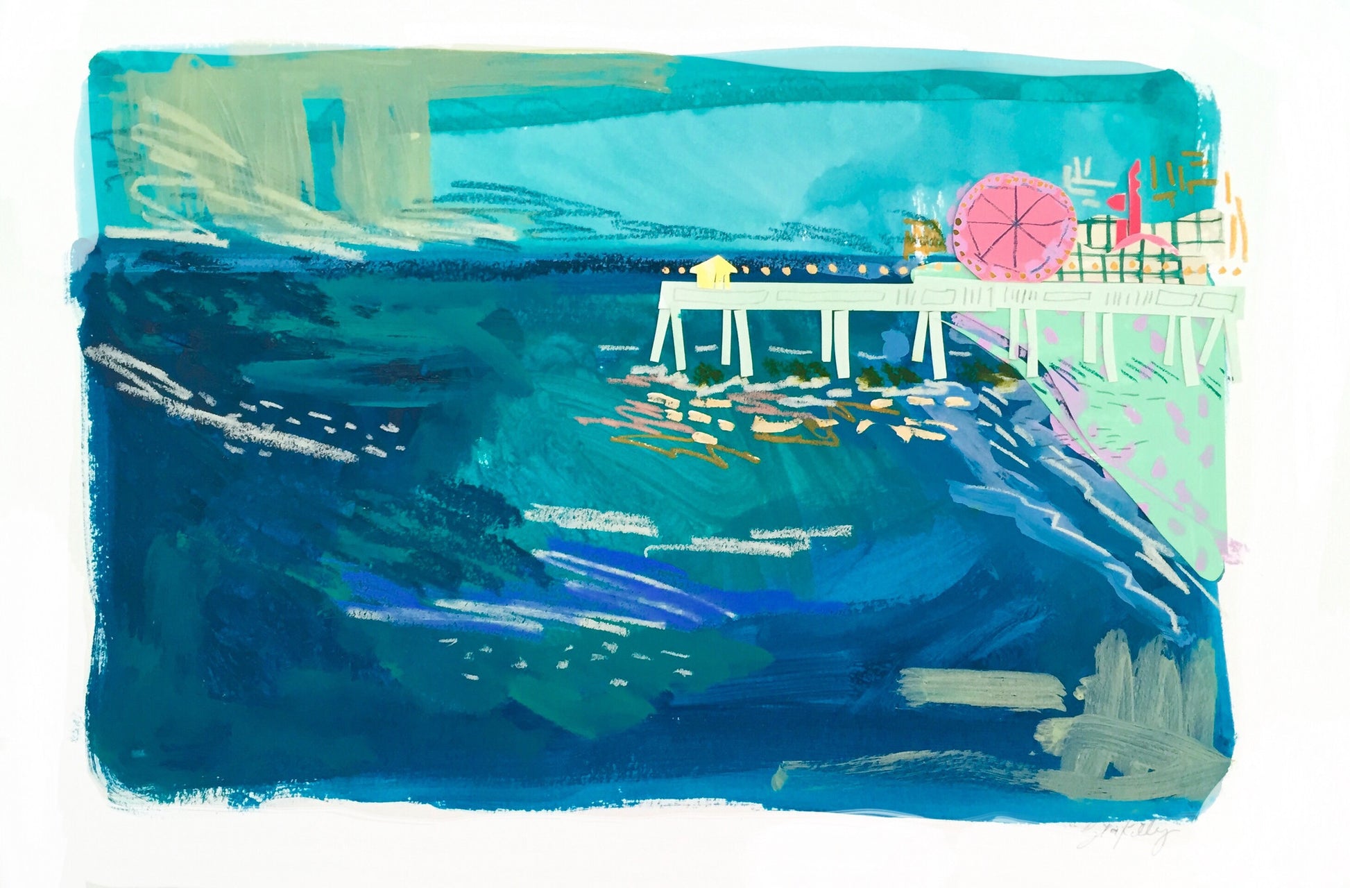 This piece is done on water color paper with acrylic paint, crayon, pencil, and layers of paper. I was very inspired during my trip down the coast of California, but felt that I needed to expand from my normal paintings to capture it's spunk. This piece will be shipped from Charleston, SC in a flat cardboard box. It is a standard size, so you can buy or order a frame with out having to do a custom one.