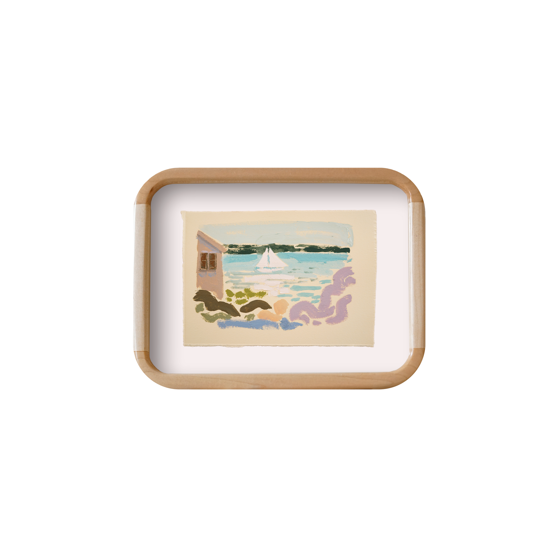 Oil on BFK Rives 280gsm paper floated in a Rounded Natural Wood Frame with Pure White mat