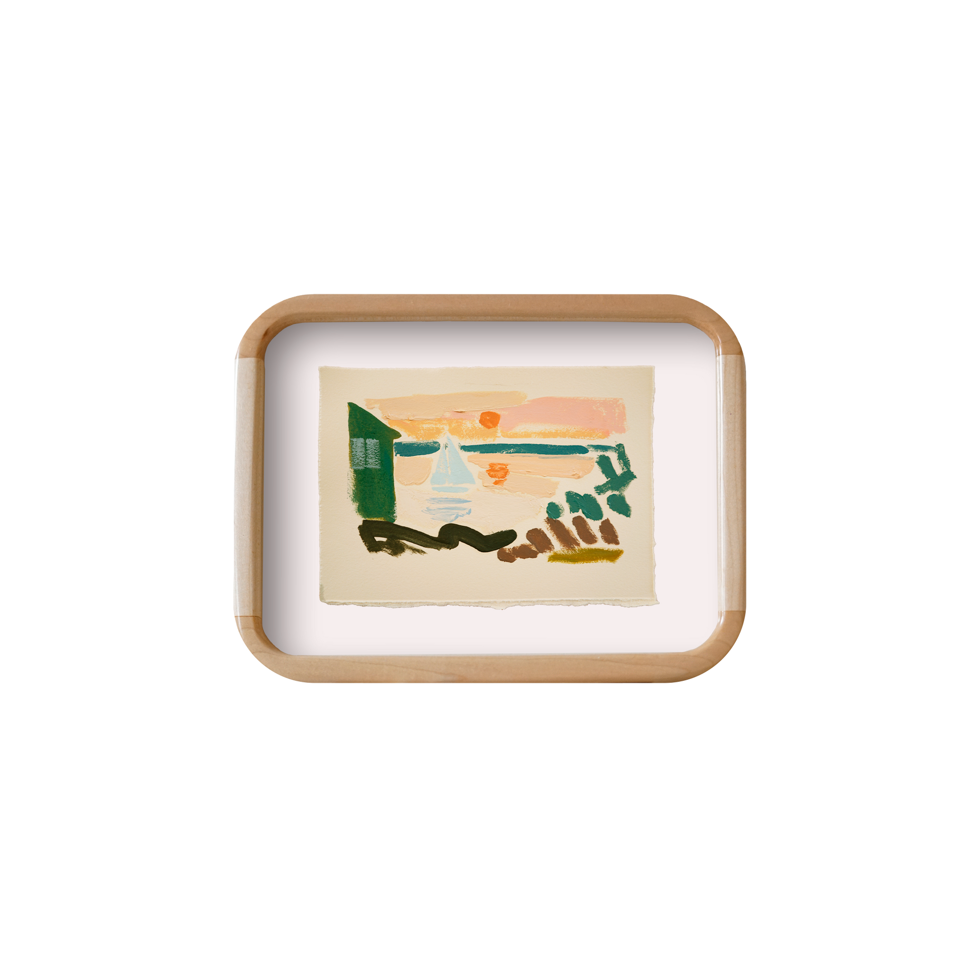 Oil on BFK Rives 280gsm paper floated in a Rounded Natural Wood Frame with Pure White mat