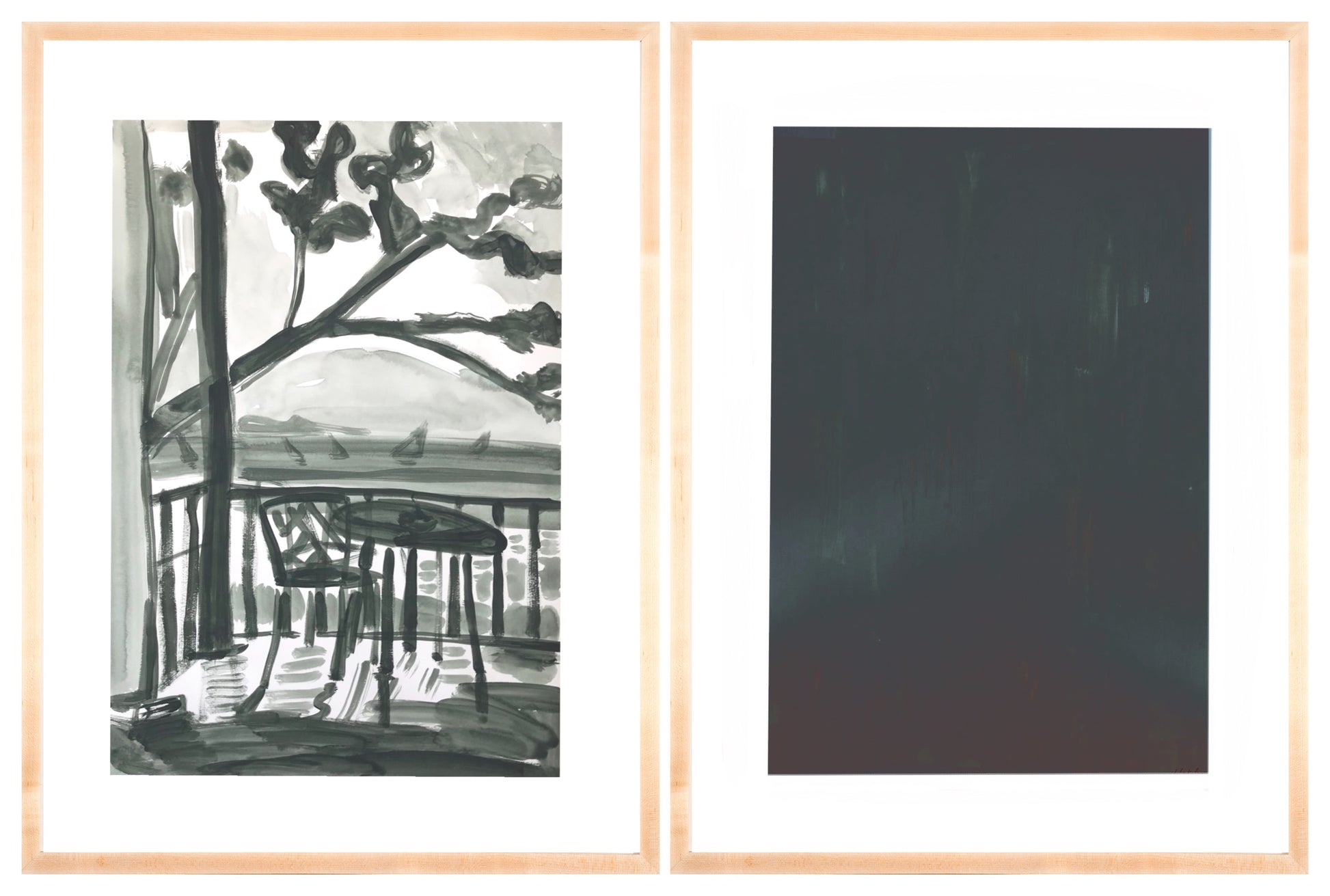 This piece is painted with all Farrow & Ball paint in the color Studio Green. On the left, a monochromatic coastal scene, on the right a contemporary block of color. It is part of the collection, 'The Color of Home' which depicts life by the coast through bold brush strokes, pattern, and blocks of color. This piece will be shipped from Charleston, SC via UPS.
