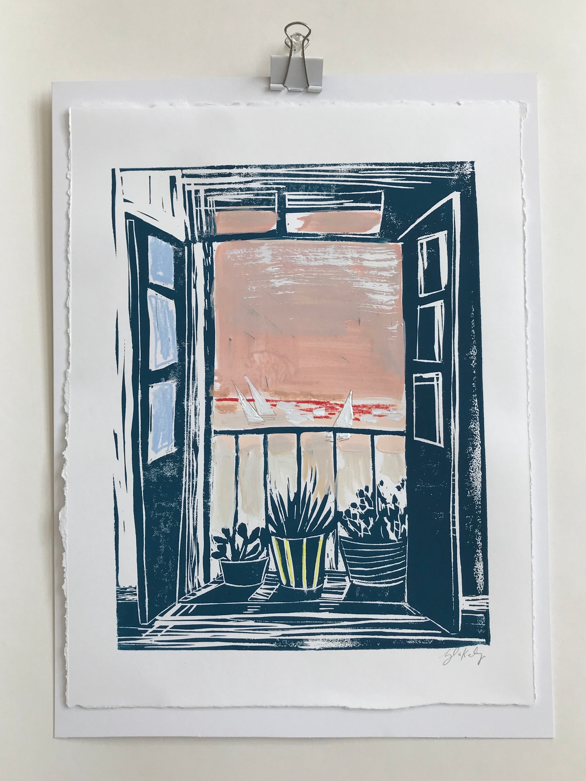 To read more about how linocut prints are made, check out my sketchbook. This piece is part of the collection, 'The Color of Home.' It depicts life by the coast through bold brush strokes, pattern, and blocks of color. This piece will be shipped from Charleston, SC via UPS.