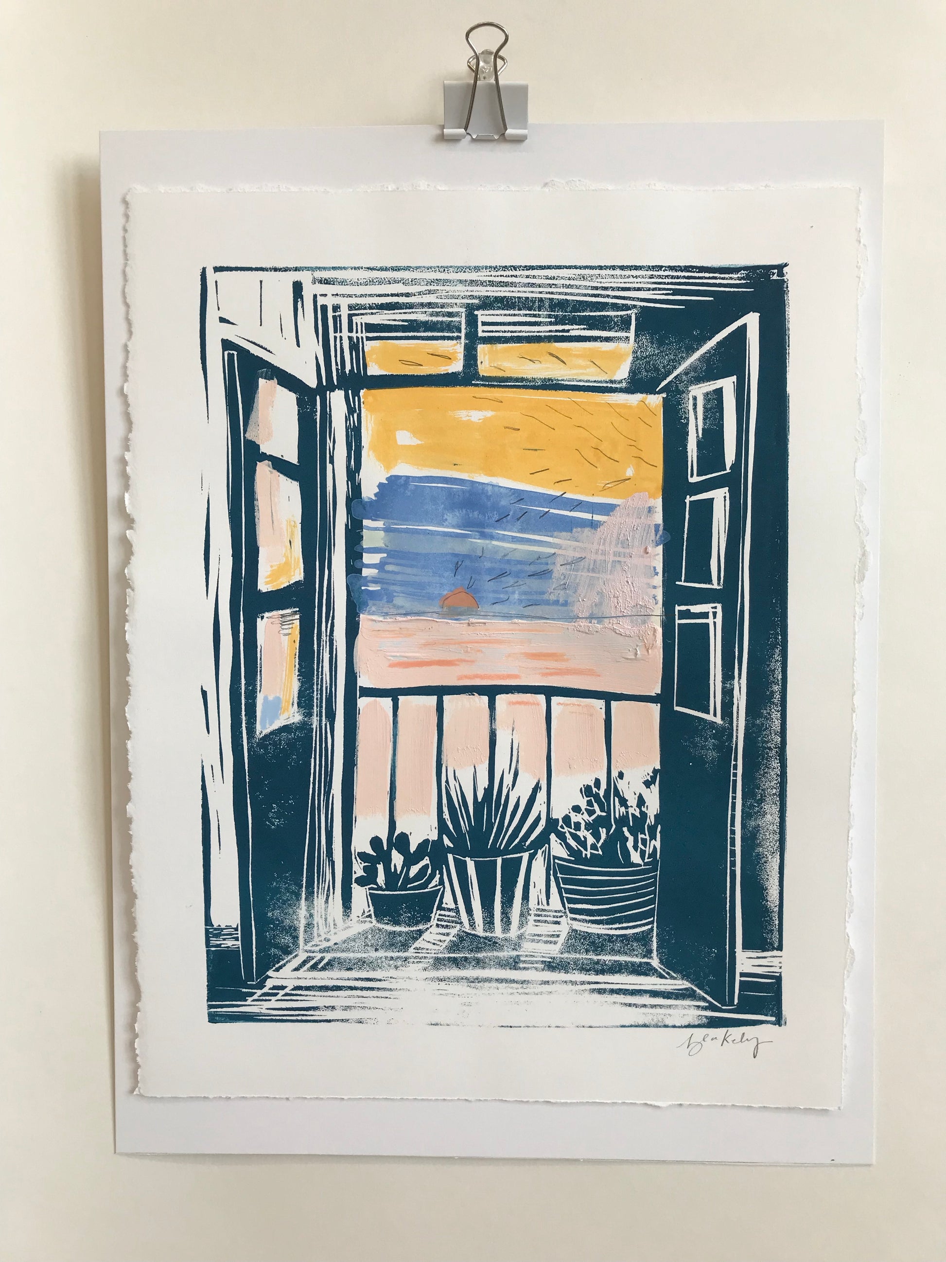 To read more about how linocut prints are made, check out my sketchbook. This piece is part of the collection, 'The Color of Home.' It depicts life by the coast through bold brush strokes, pattern, and blocks of color. This piece will be shipped from Charleston, SC via UPS.