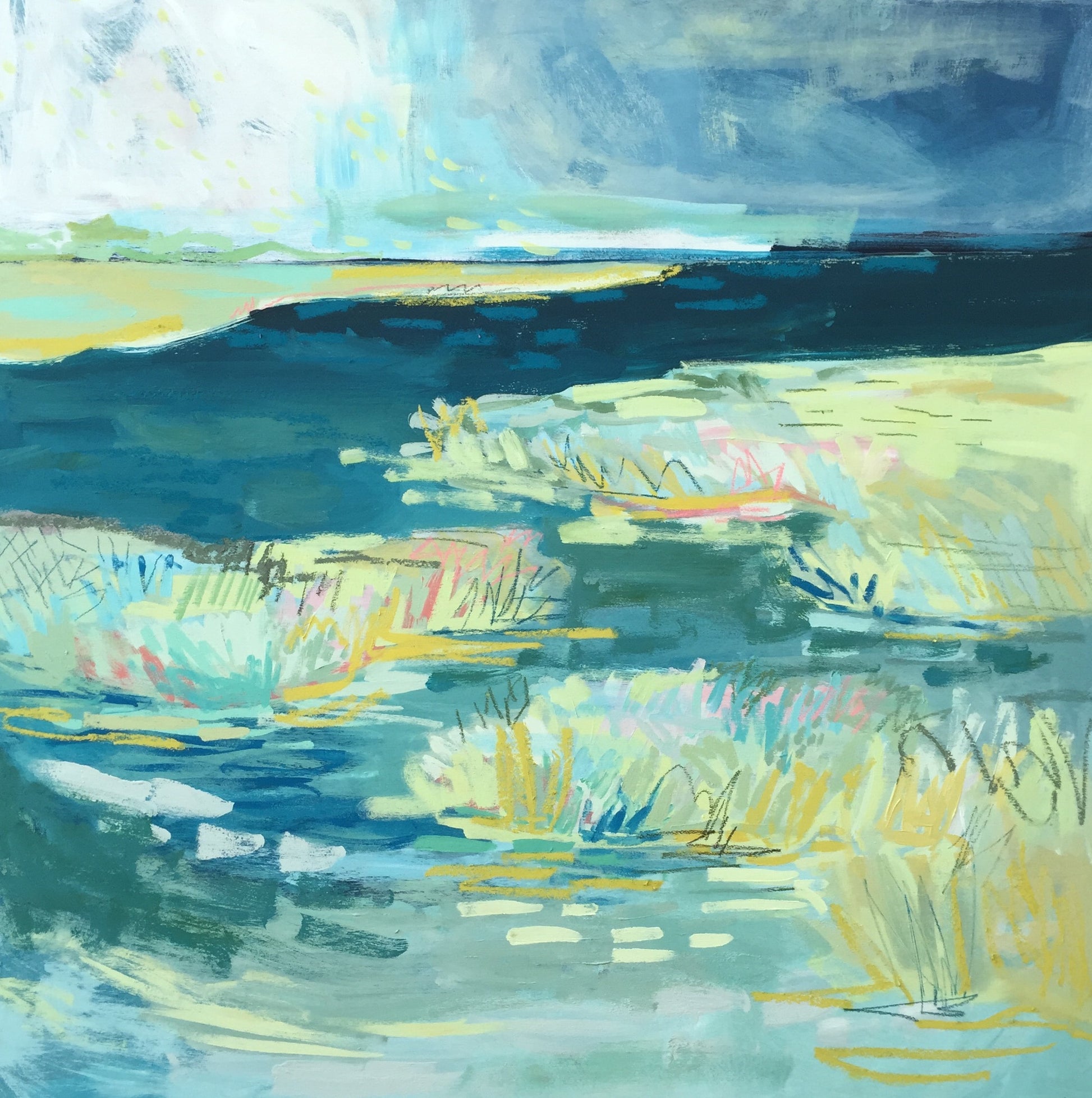 This is an original piece that is a part of my newest marsh collection. It is acrylic paint, gouache, neo-color crayon, and oil pastel on a birch wood panel. Each piece is hand signed by the artist. The sides have a two once depth and will be painted white. This painting will be shipped via UPS out of Charleston, SC within a week of placing your order.
