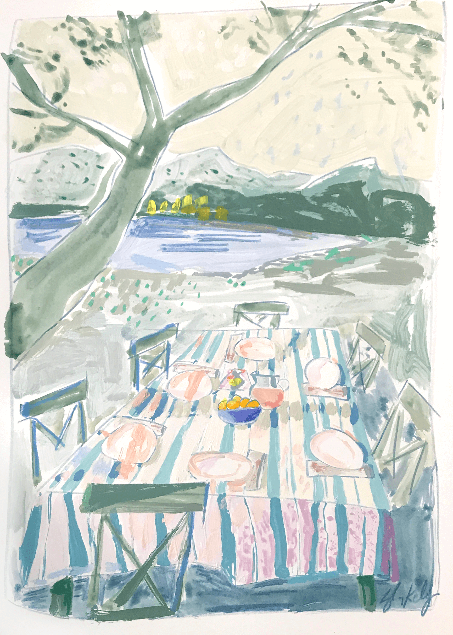 This piece is a part of Blakely's 2020 "Al Fresco" Collection and will be hand signed by Blakely. All pieces are shipped via UPS from Charleston, SC. Free shipping in the US, additional costs for shipping internationally.