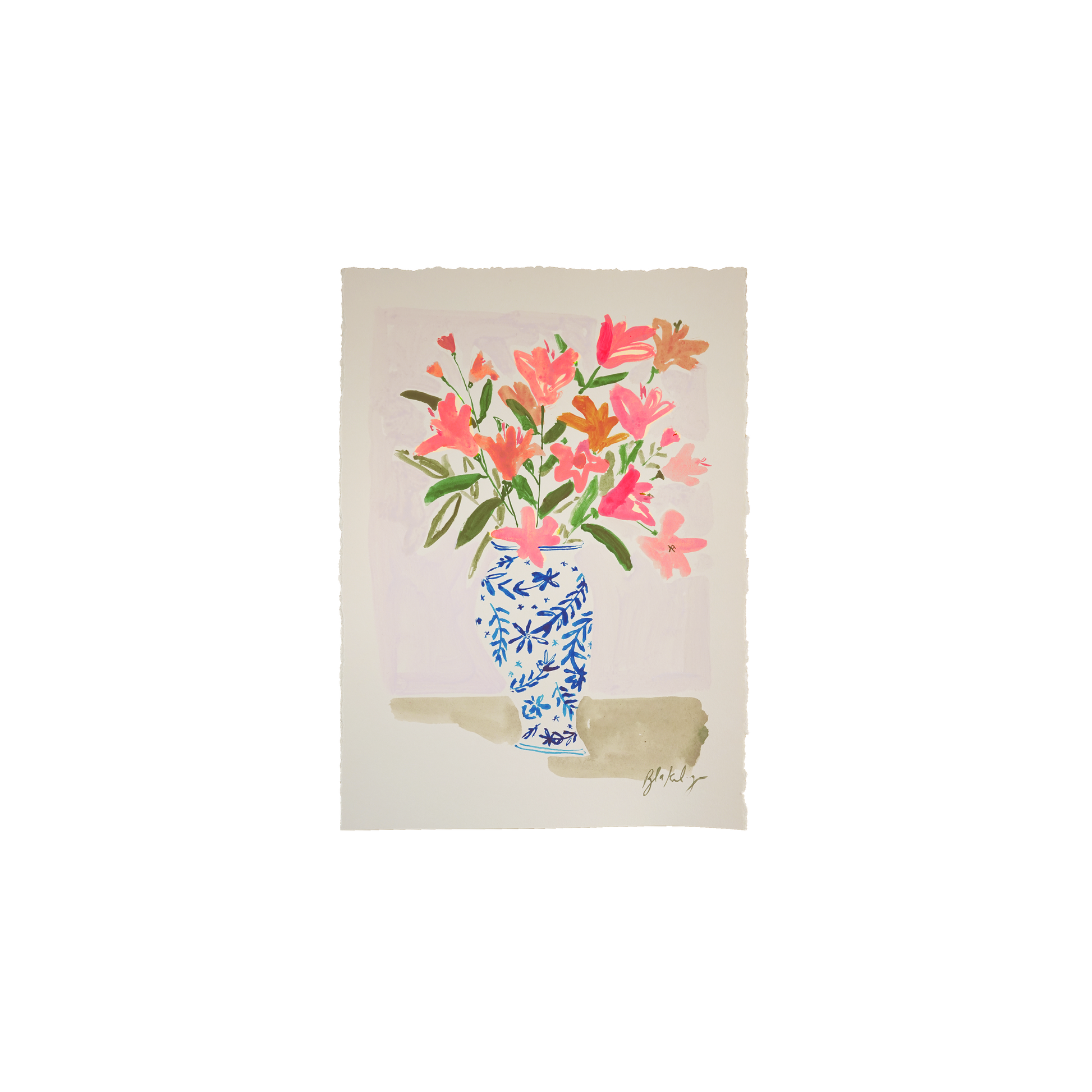 This piece will be hand-signed by Blakely. All pieces are shipped via UPS from Charleston, SC. Free shipping in the US, additional costs for shipping internationally.
