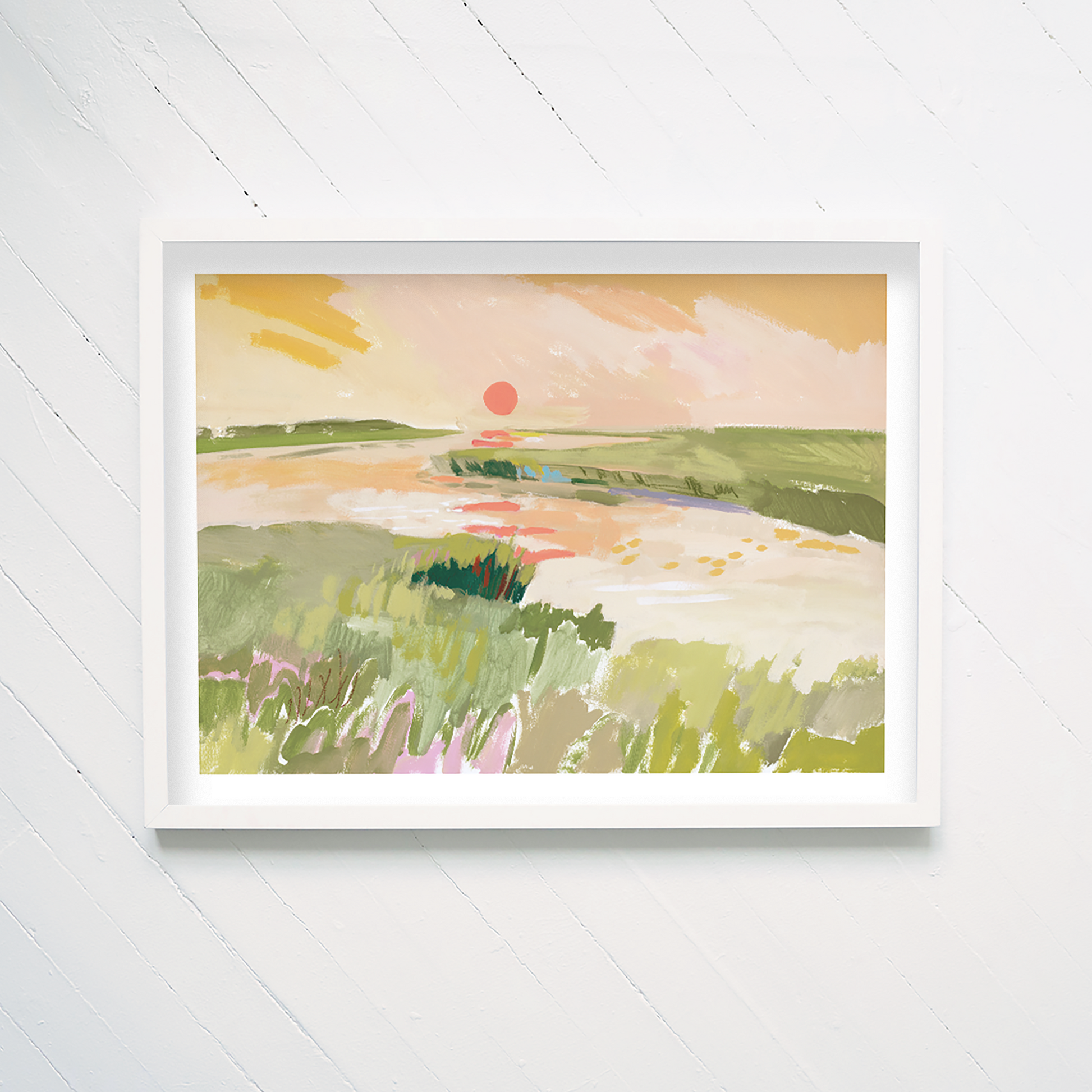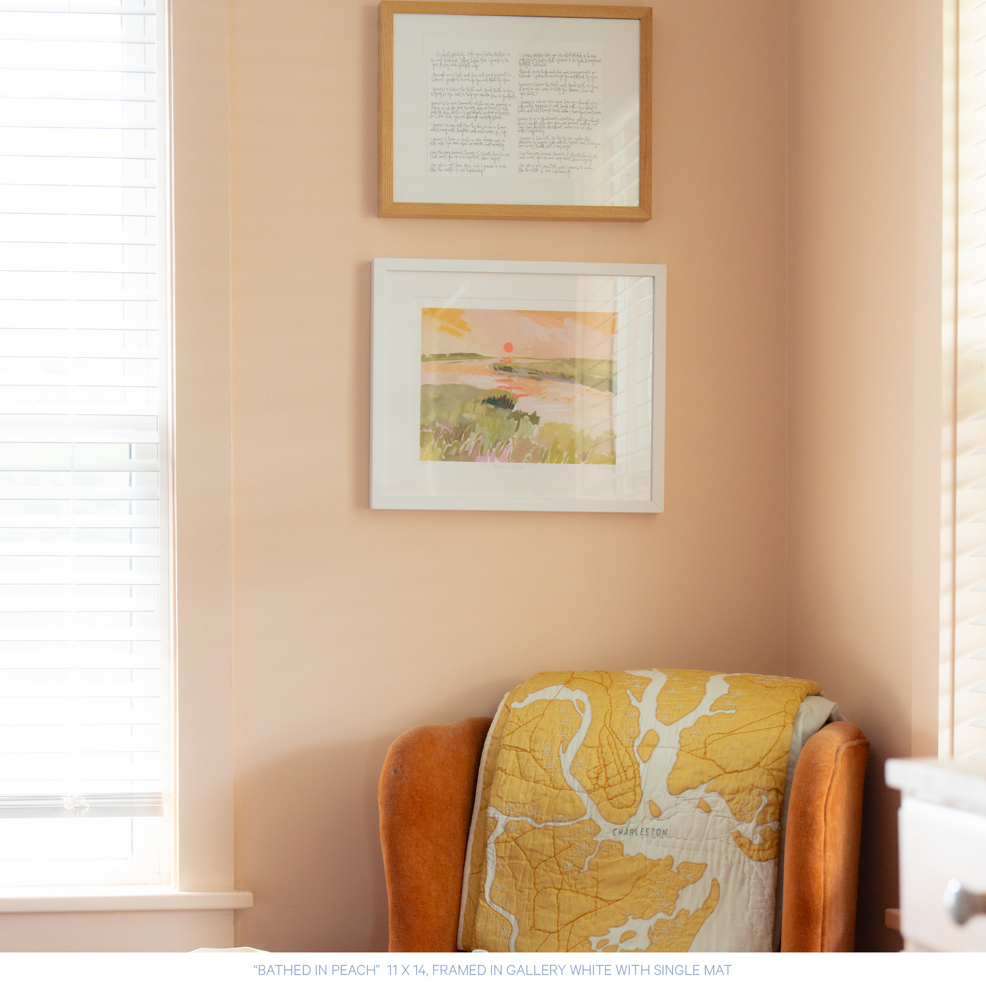 This limited edition giclee print was made from an original painting done in acrylic, pencil, and wax pastel. Every print is signed and editioned by Blakely. Unframed prints will ship from Charleston, SC within 3-8 business days. Framed prints take approximately 4-6 weeks for delivery. Only 100 available of each size.