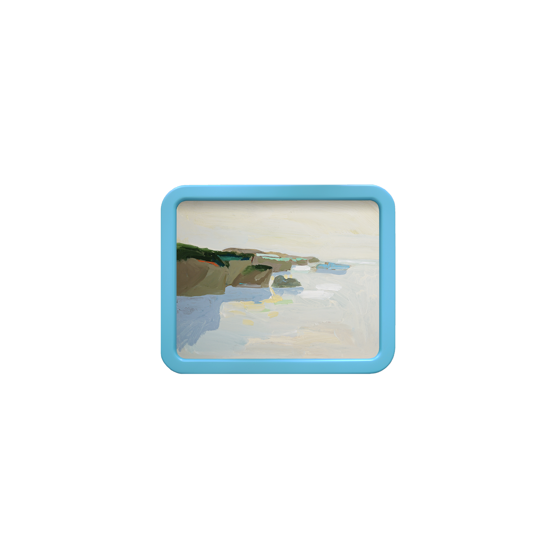 Acrylic on flat masonite panel with an optional blue rounded-corner frame
