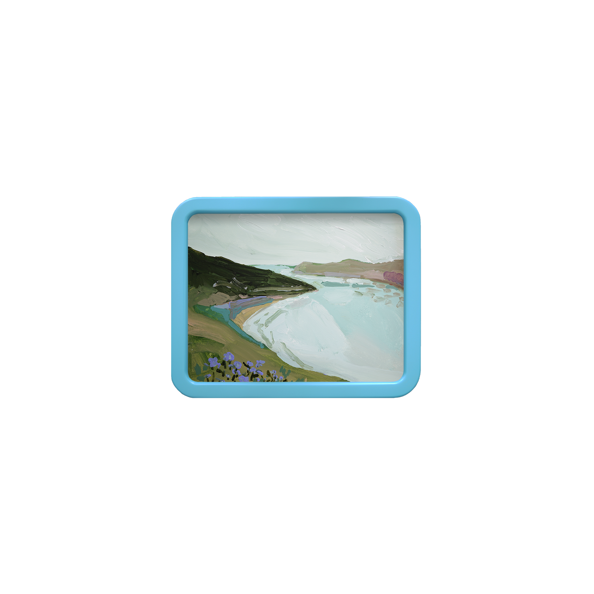 Acrylic on flat masonite panel with an optional blue rounded-corner frame