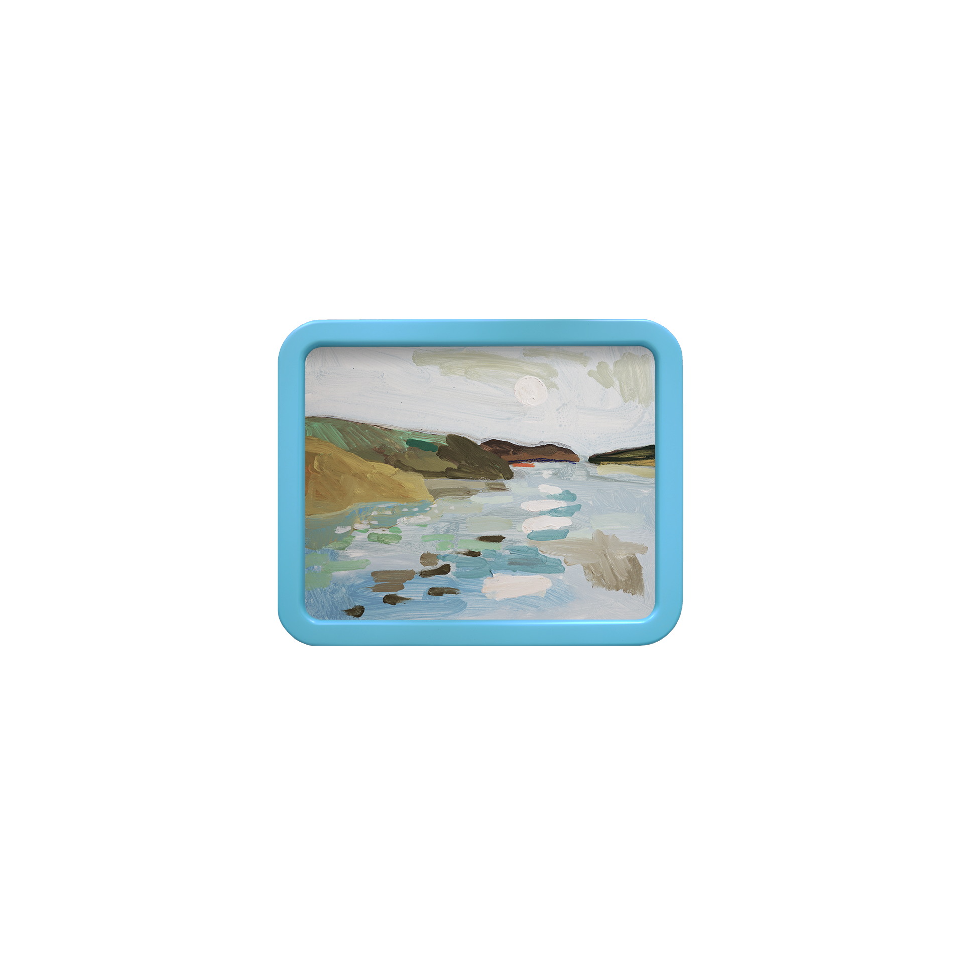 Acrylic on flat masonite panel with an optional blue rounded-corner frame