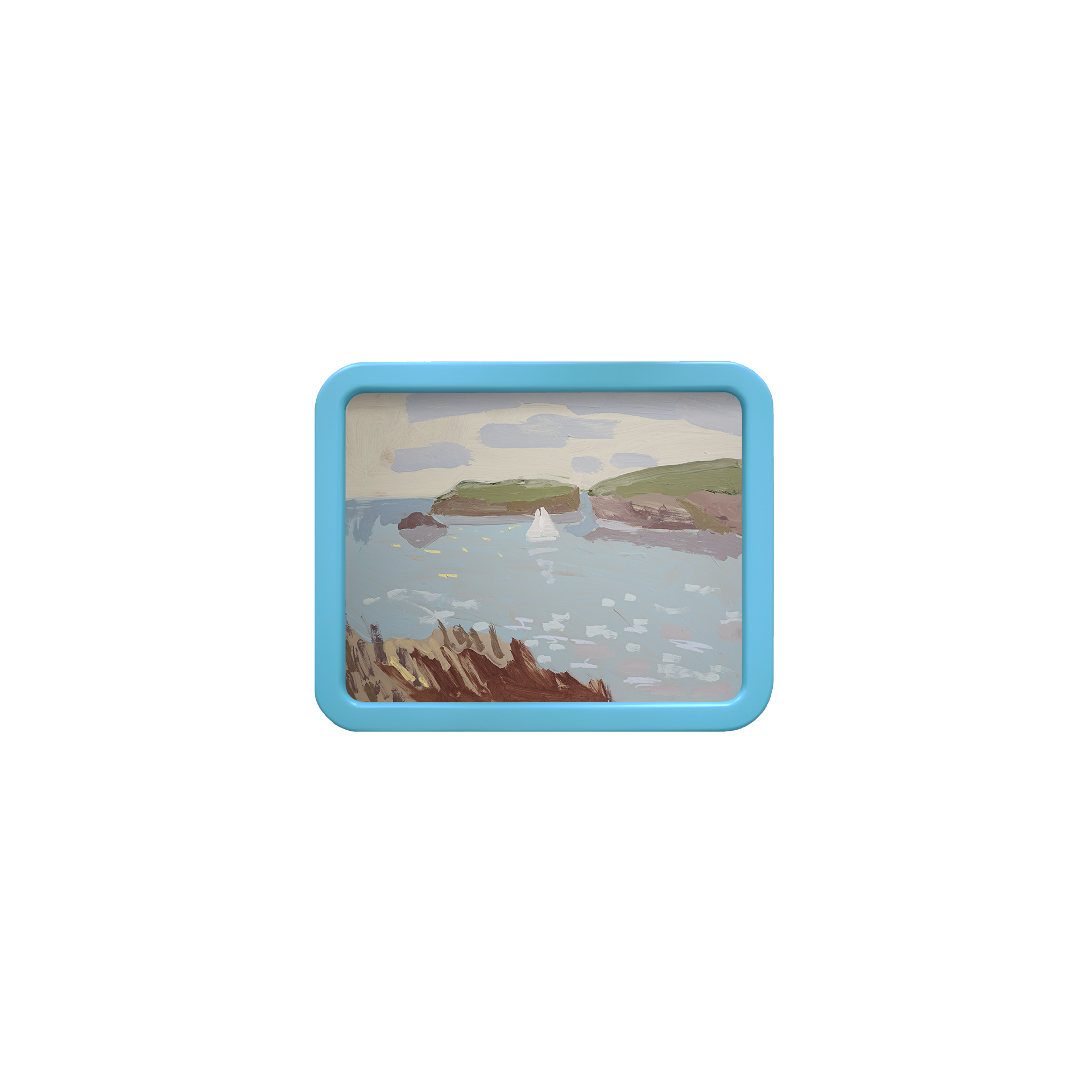Acrylic on flat masonite panel with an optional blue rounded-corner frame