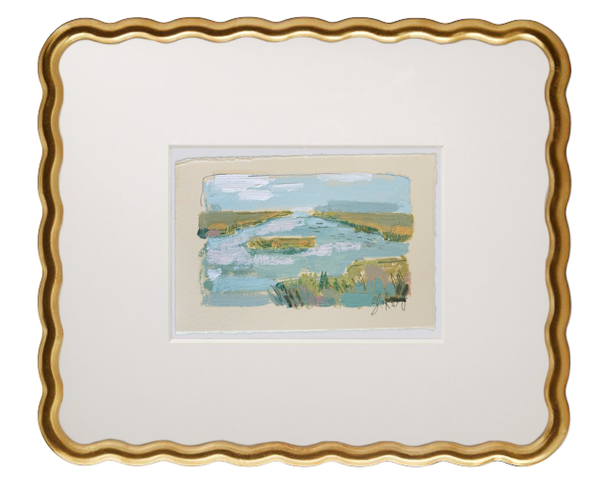 Oils and pencil on Cream Cotton Paper with an optional White Wash Mat and Gold Wave Frame
