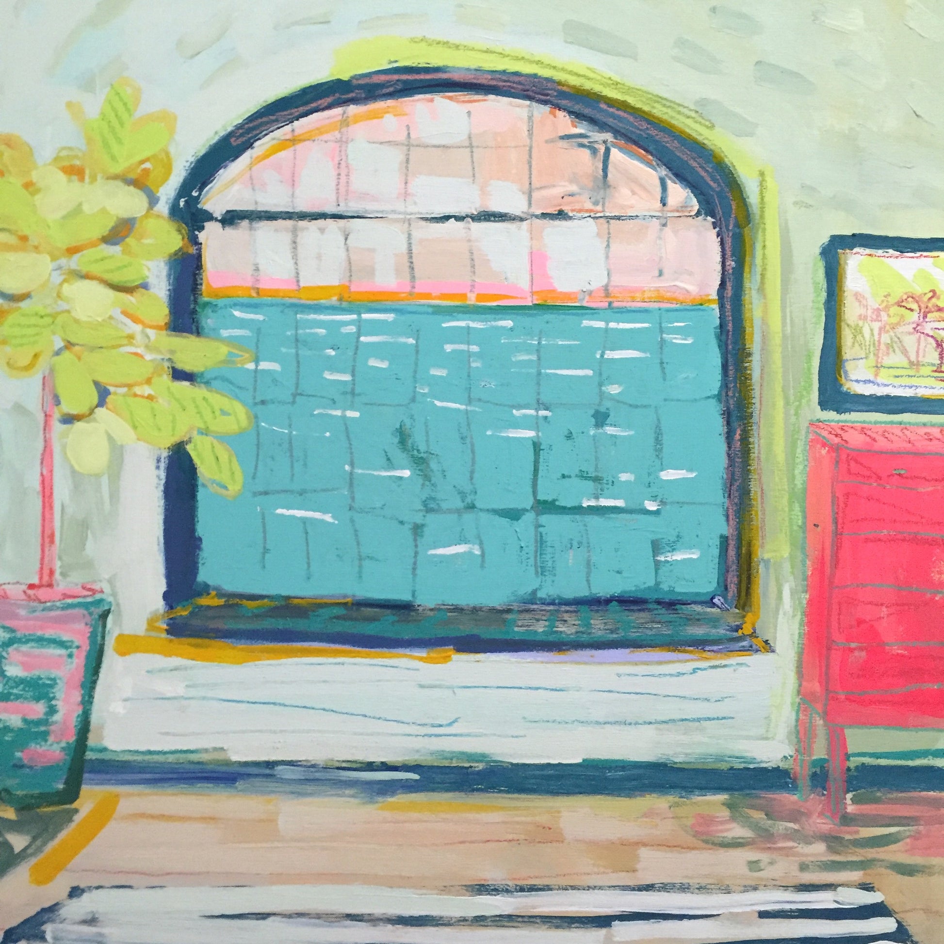 This window series is inspired by my favorite artist in the world, Matisse. I wanted to encompass his ability to use simple lines to create depth and interest. This piece is made of acrylic paint, neo color crayon, gauche, and pencil. It is done on a birch wood panel with a depth of 2 inches that will be painted white. It will be shipped from Charleston, SC.