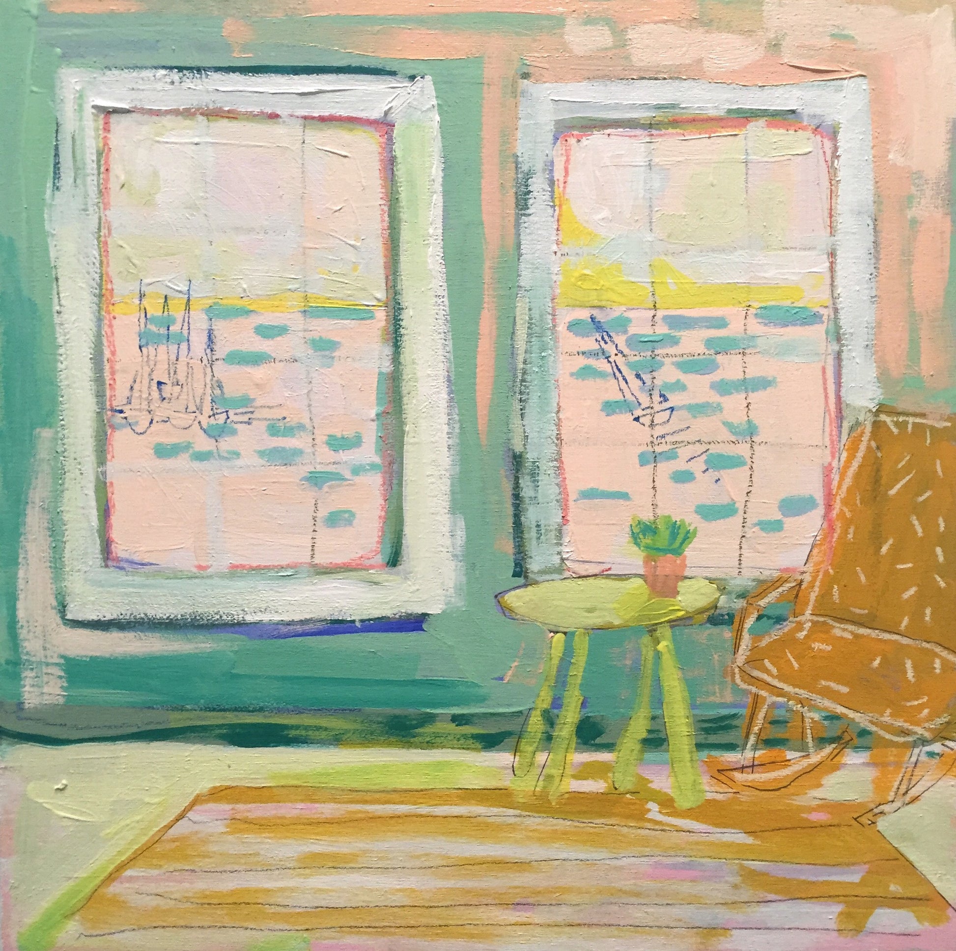 This window series is inspired by my favorite artist in the world, Matisse. I wanted to encompass his ability to use simple lines to create depth and interest. This piece is made of acrylic paint, neo color crayon, gauche, and pencil. It is done on a birch wood panel with a depth of 2 inches that will be painted white. It will be shipped from Charleston, SC.