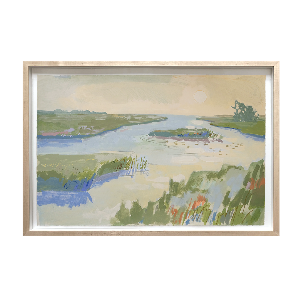 Acrylic, pencil, and wax pastel on paper with an optional Natural Wood Floated frame