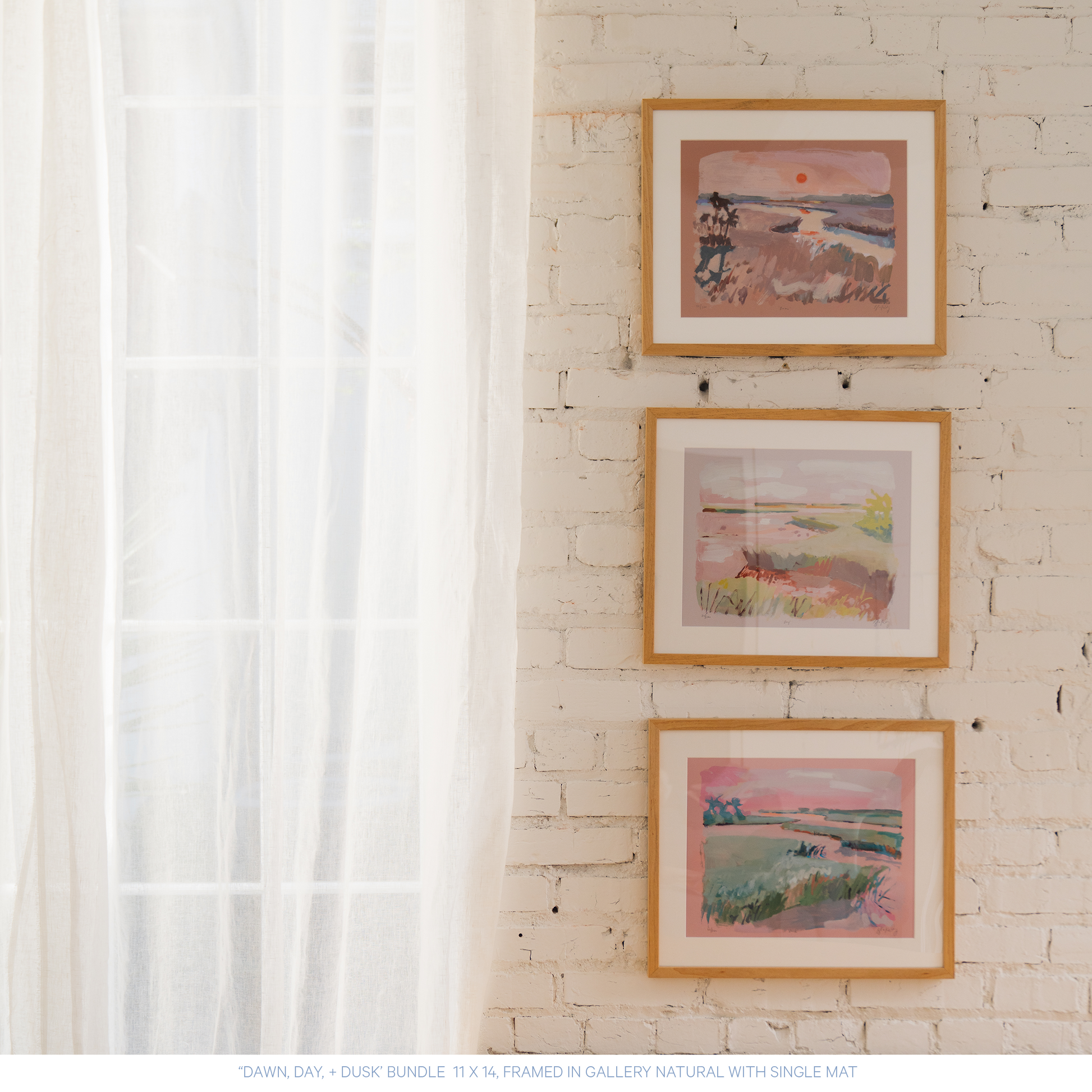 This limited edition set of three giclee print was made from original paintings done in acrylic, gouache, and pencil. Background extends to the edge. Every print is signed and editioned by Blakely. Unframed prints will ship from Charleston, SC within 3-8 business days. Framed prints take approximately 4-6 weeks for delivery. Only 100 bundles available of each size.