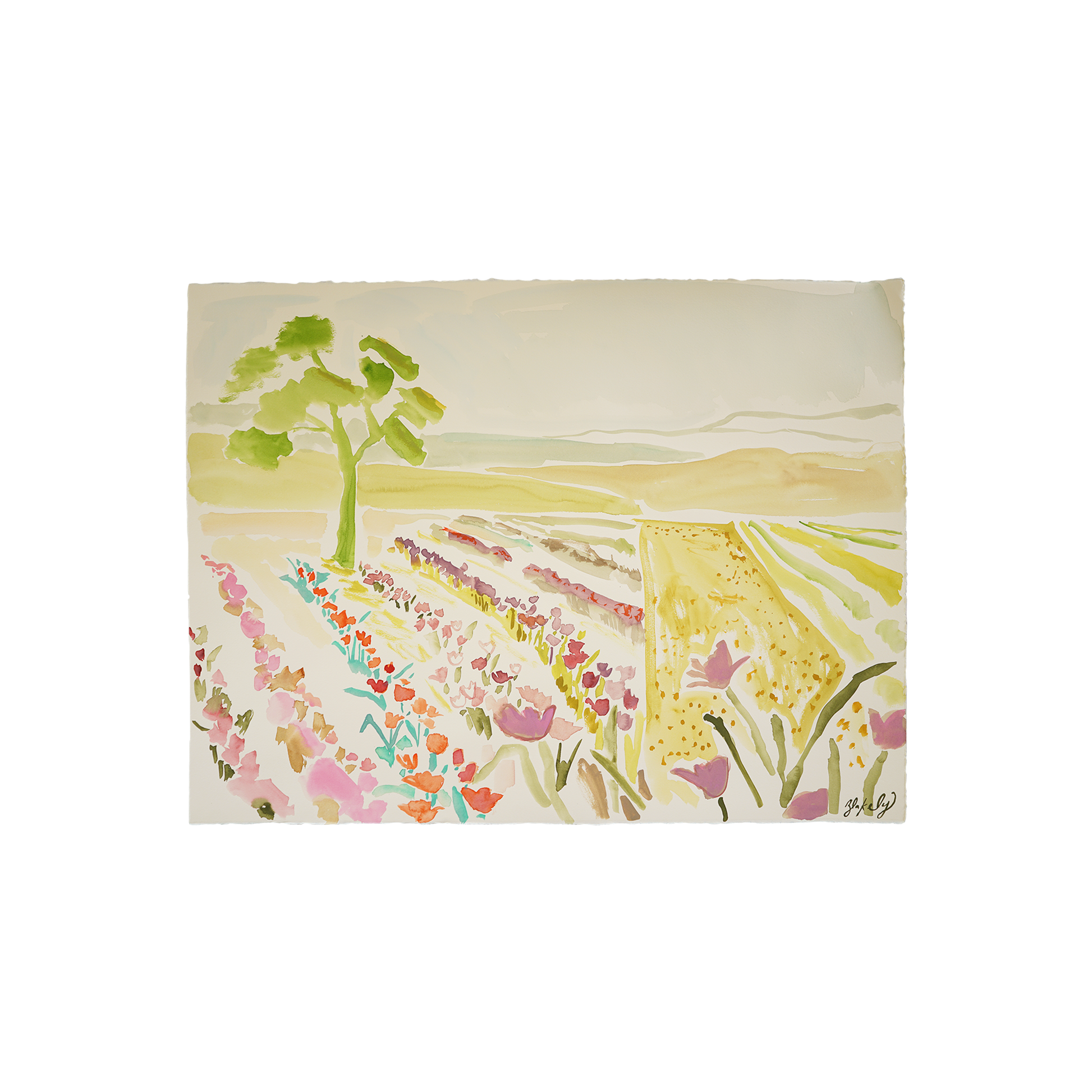 Watercolor on BFK Rives 280gsm paper with an optional Natural Wood Floated Frame.