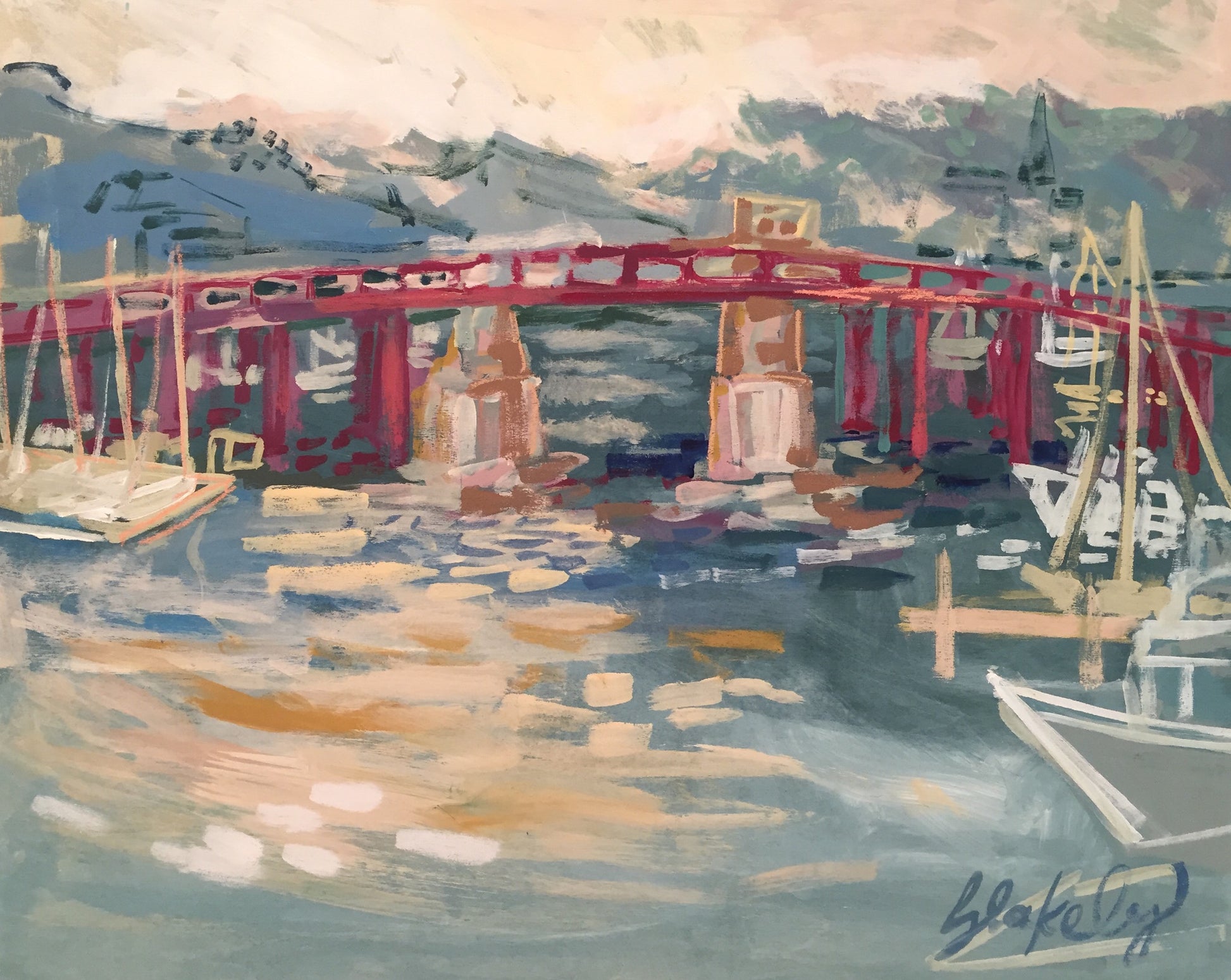 Acrylic paint, oil pastel on panel