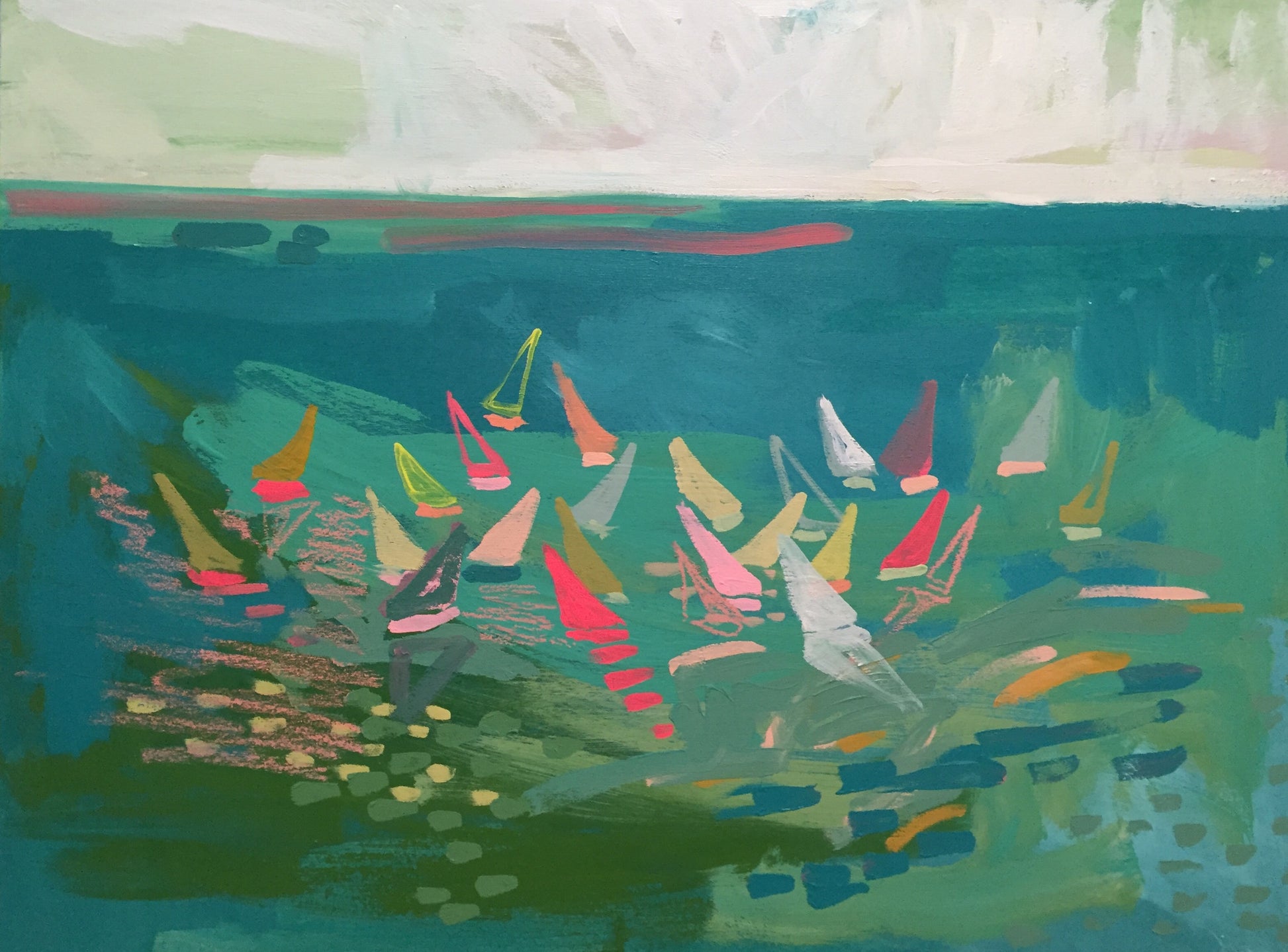 These regatta pieces are inspired by my days spent on the water racing sailboats. I love the chaos of the sails and how busy, yet beautiful! This is an original acrylic piece on a birch wood panel. The sides are painted white, and it is signed by Blakely. Colors may vary slightly in person. Paintings are shipped via UPS from Charleston, SC.