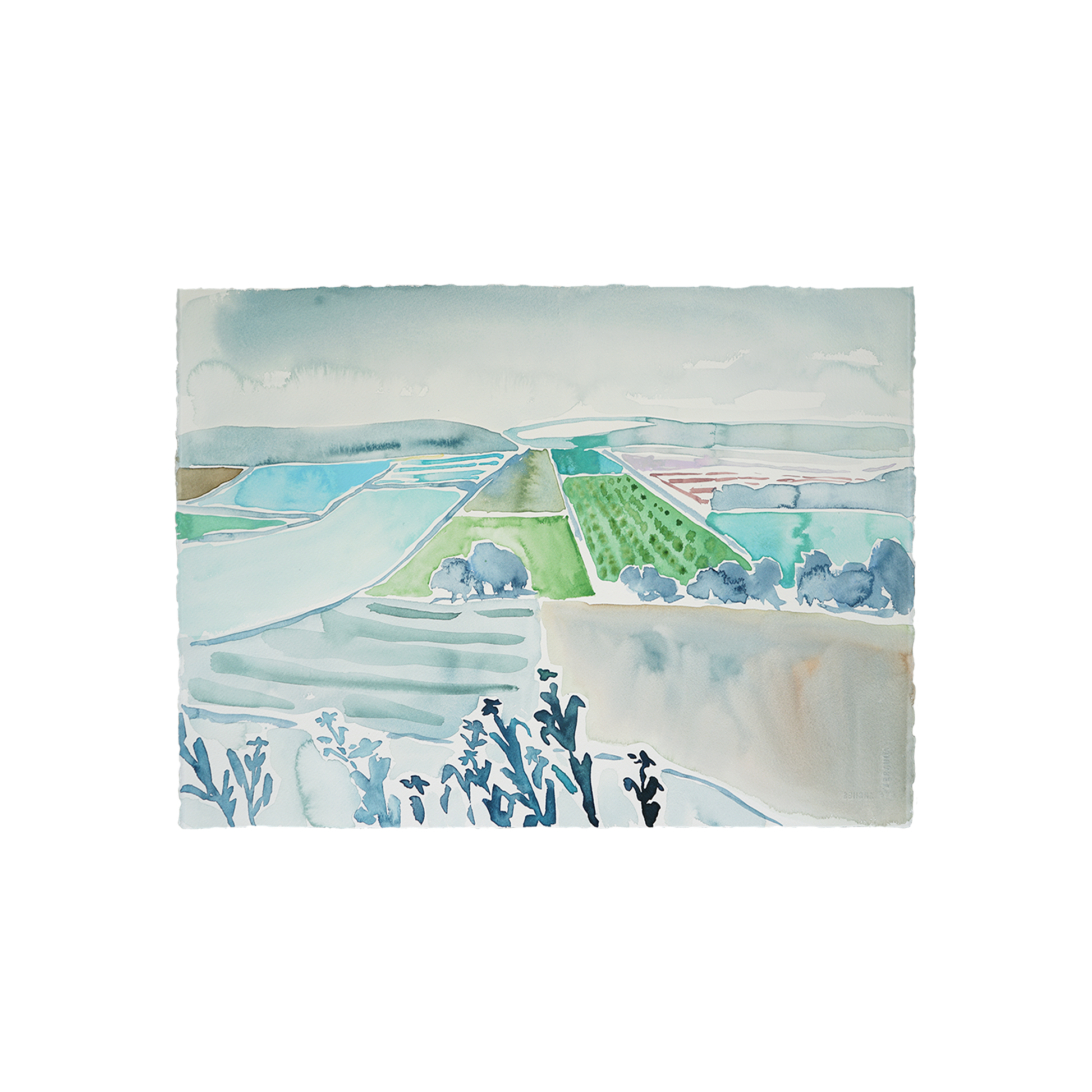 Watercolor on White Paper with an optional Natural Wood Floated Frame.